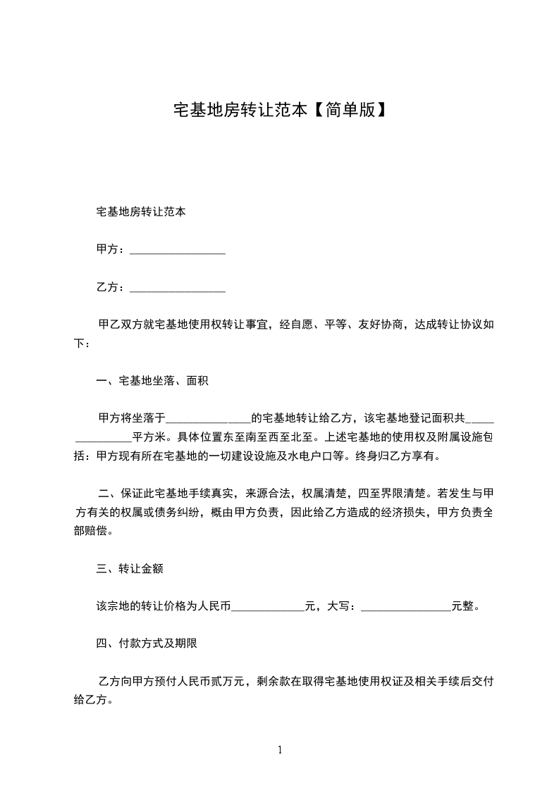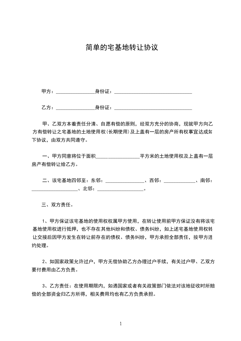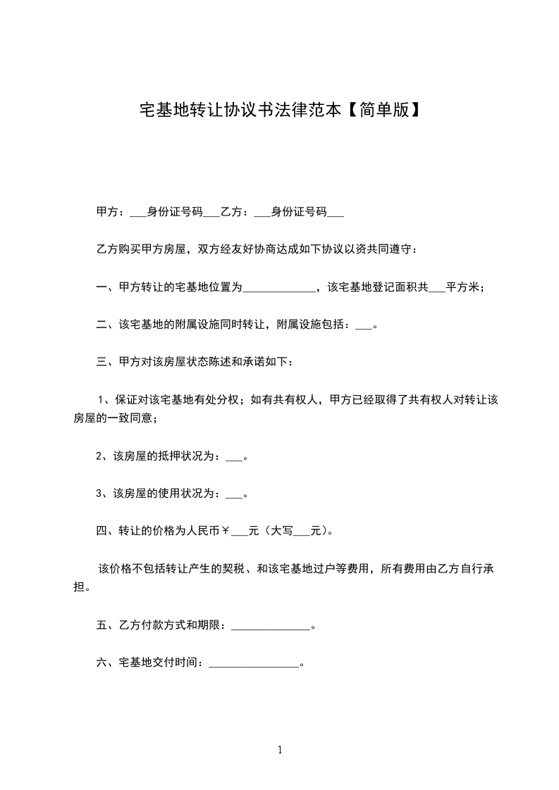 一、甲方转让的宅基地位置为_____________,该宅基地登记面积共___平方米;