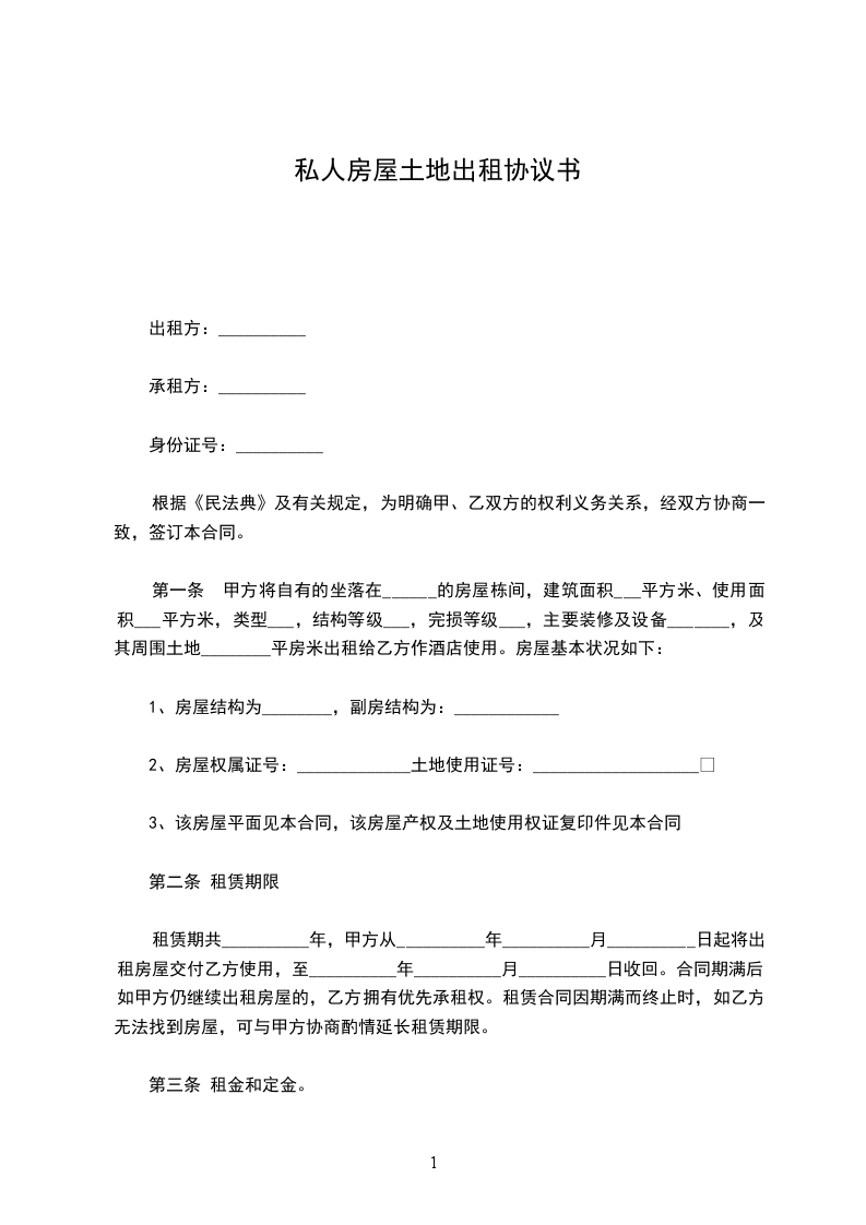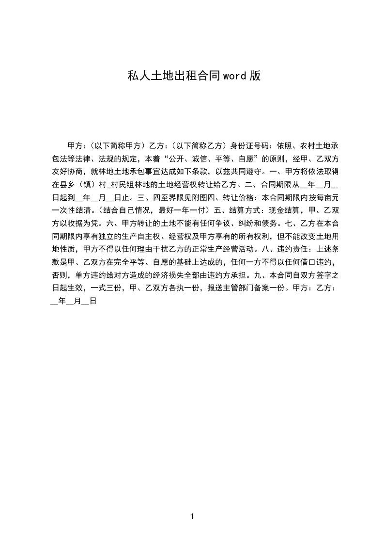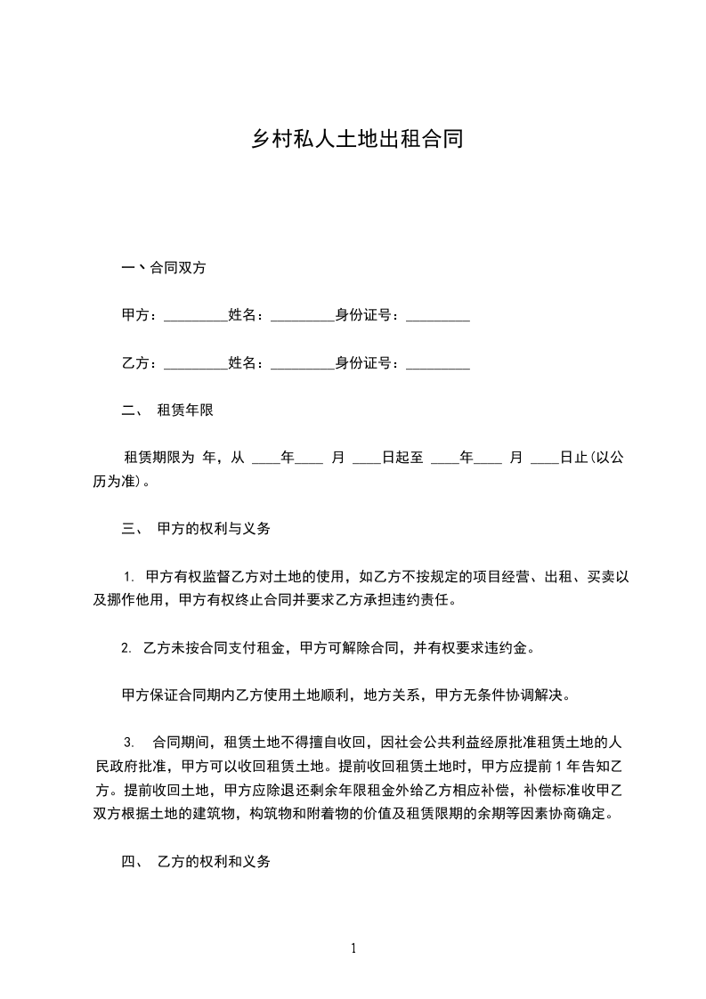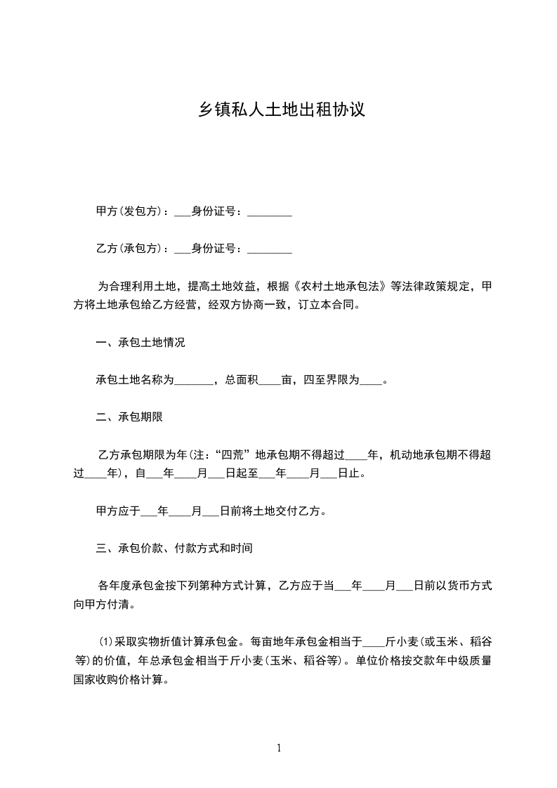 甲方自愿将位于____________________一块土地租赁给乙方,该块土地面积共____亩,四至详见附图。
