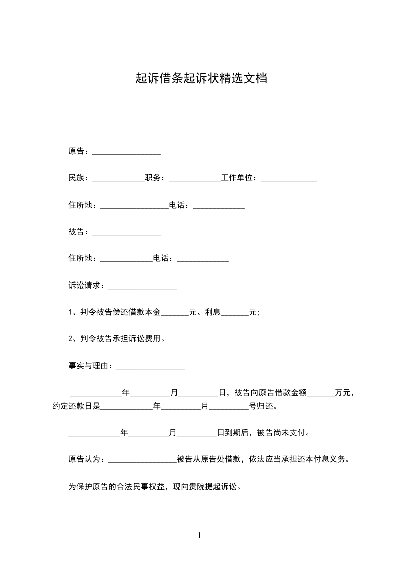 借条上诉状范本