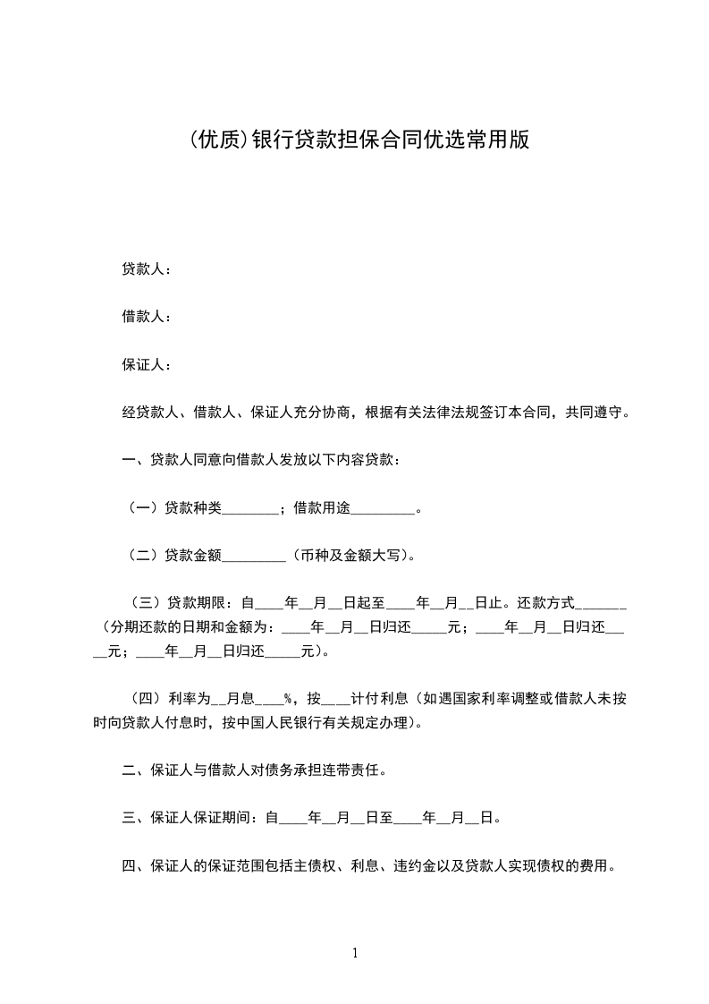 (三)个人担保银行贷款合同范本担保方式为连带责任担保。