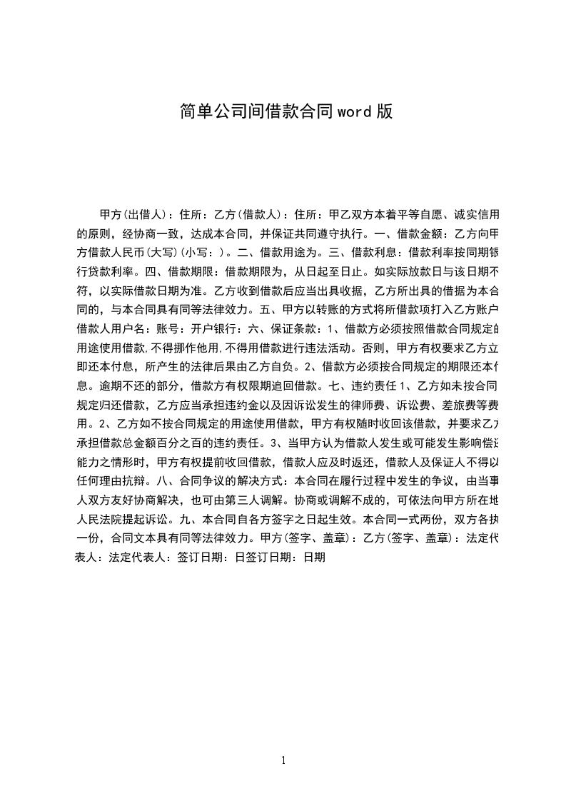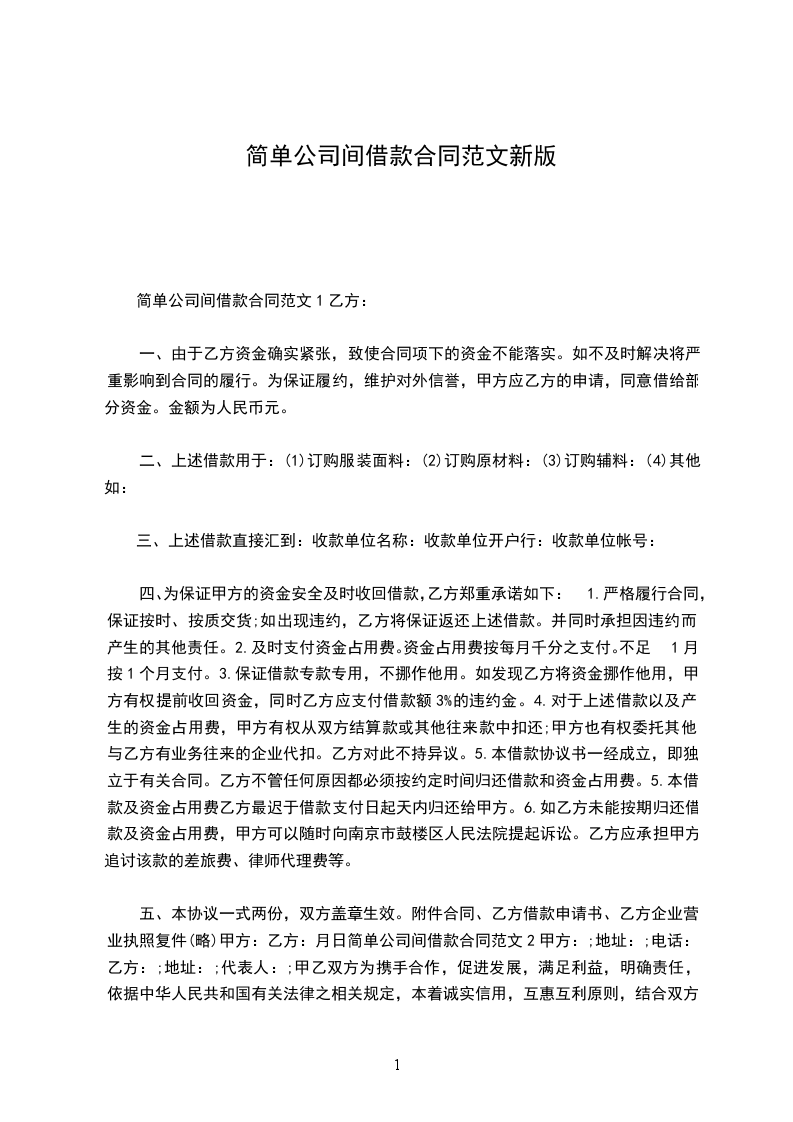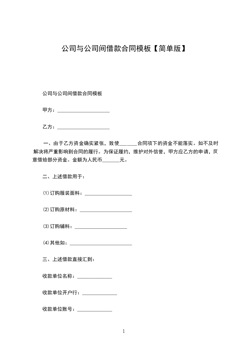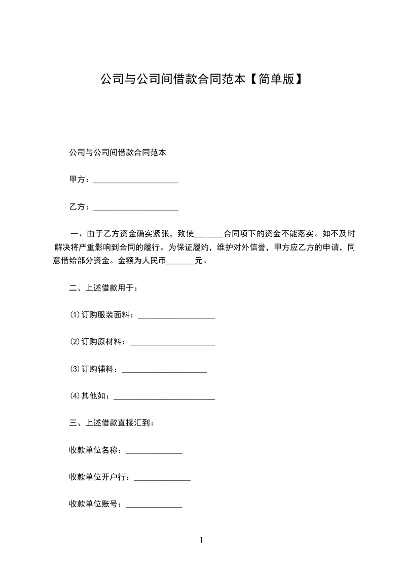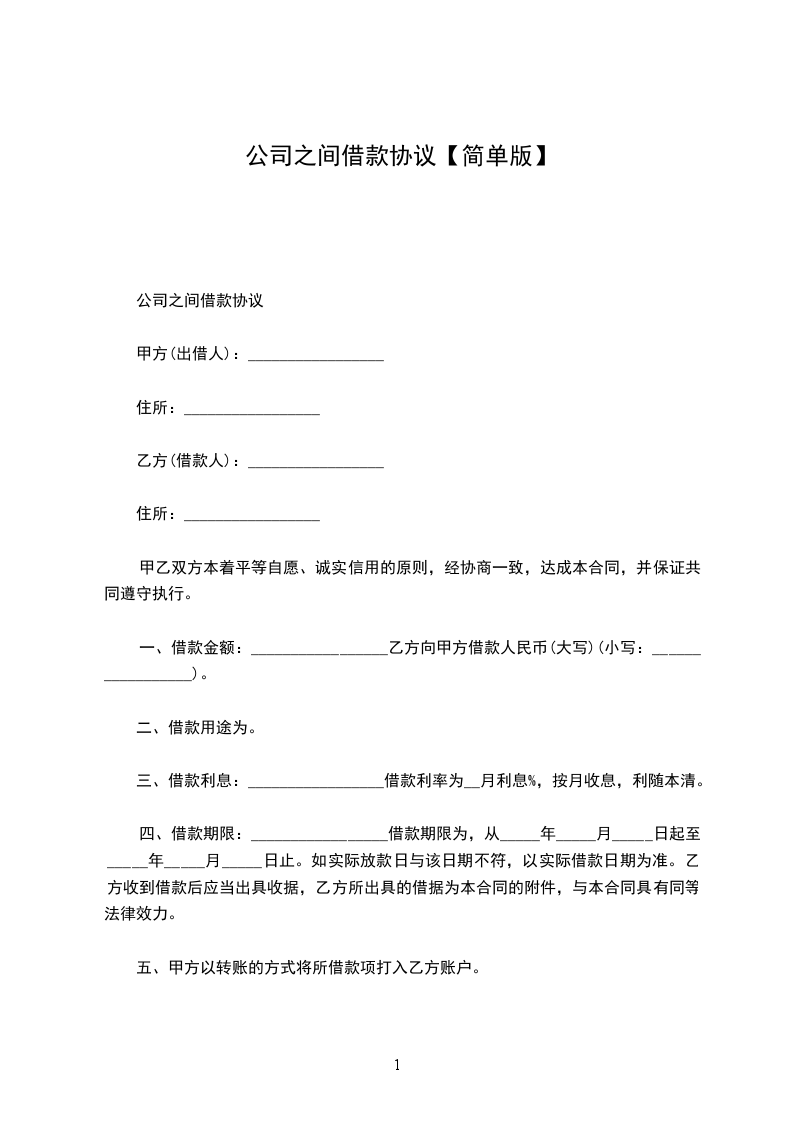 公司与公司间借款合同范本