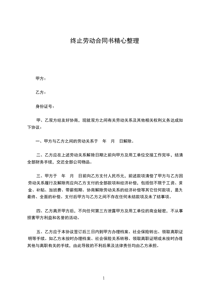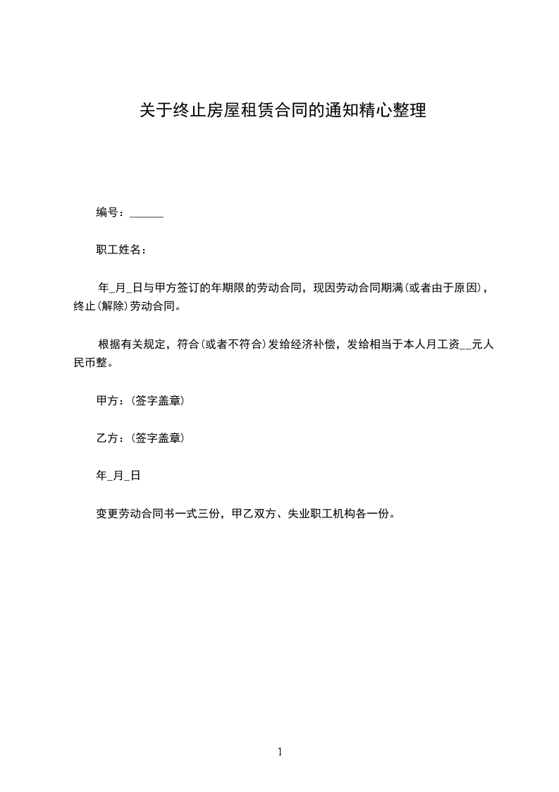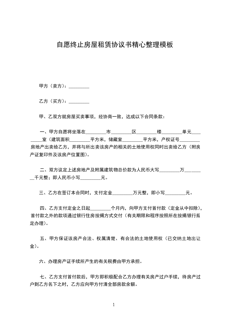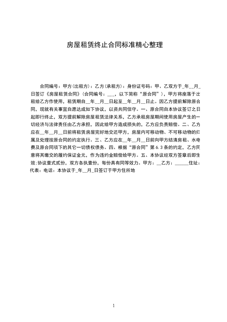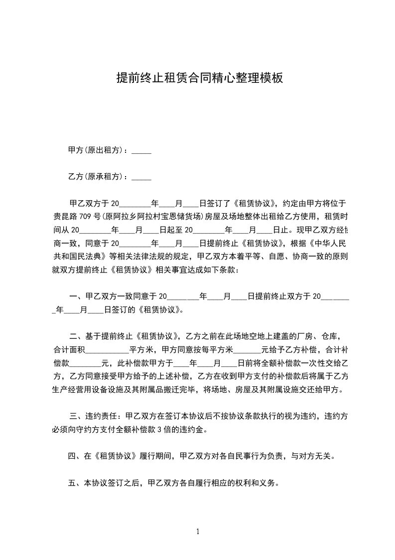 一、甲乙双方一致同意于____年__月__日提前终止双方于____年__月__日签订的《房屋租赁合同》。