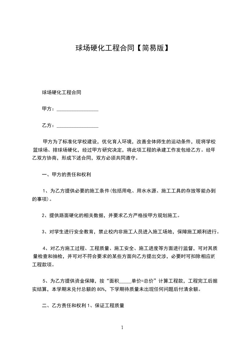 甲方为了标准化学校建设,优化育人环境,改善全体师生的运动条件,现将学校篮球场、排球场硬化,经过甲方研究决定,将此项工程的承建工作发包给乙方。经甲乙双方协商,形成下述合同,双方必须共同遵守。