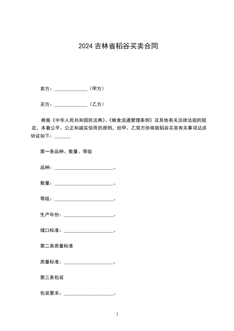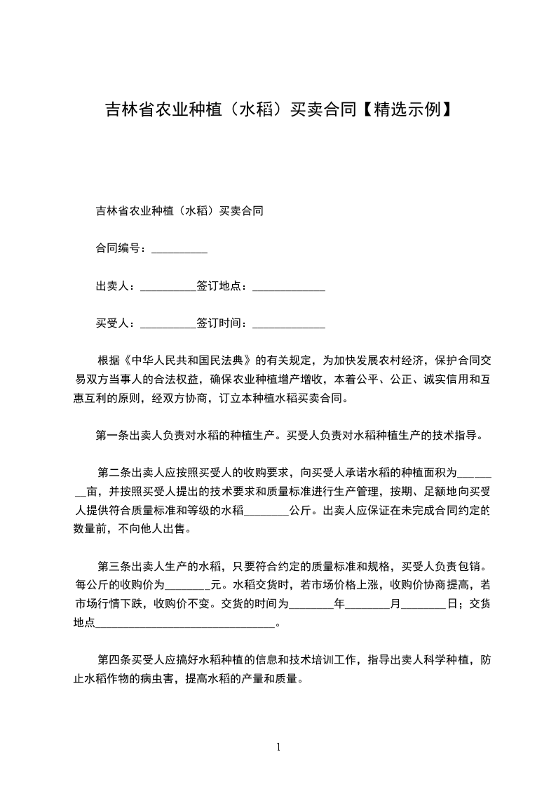 吉林省农业种植(水稻)买卖合同