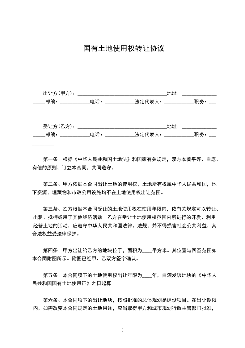 第十条:本合同于双方法定代表人签字并加盖公章之日起生效。附件:《天津港保税区国有土地使用权有偿出让合同(津保合字第_______号)》