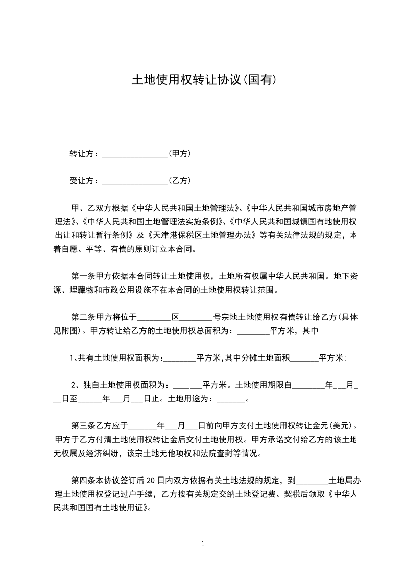 甲、乙双方根据《中华人民共和国土地管理法》、《中华人民共和国城市房地产管理法》、《中华人民共和国土地管理法实施条例》、《中华人民共和国城镇国有地使用权出让和转让暂行条例》及《天津港保税区土地管理办法》等有关法律法规的规定,本着自愿、平等、有偿的原则订立本合同。