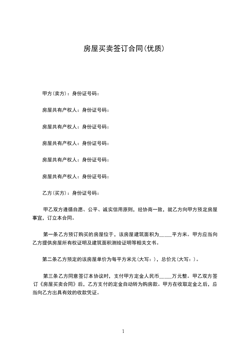 甲、乙双方于________年________月________日签订了《房屋买卖合同》。甲、乙双方在平等、自愿、协商一致的基础上达成如下协议,共同遵守: