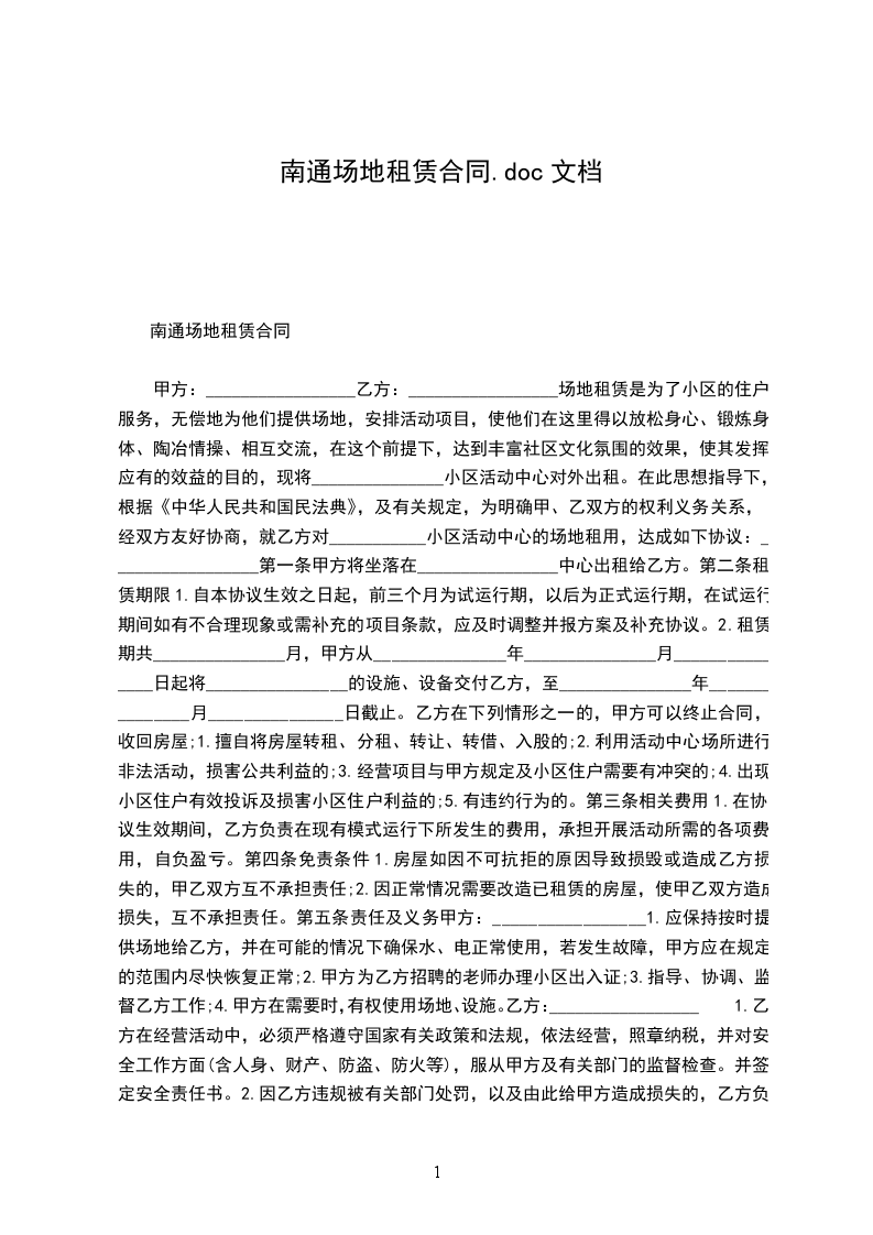 南通场地租赁合同