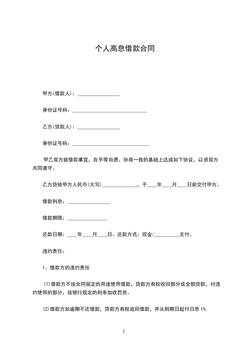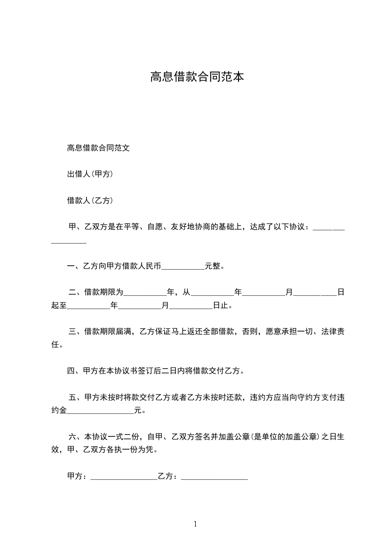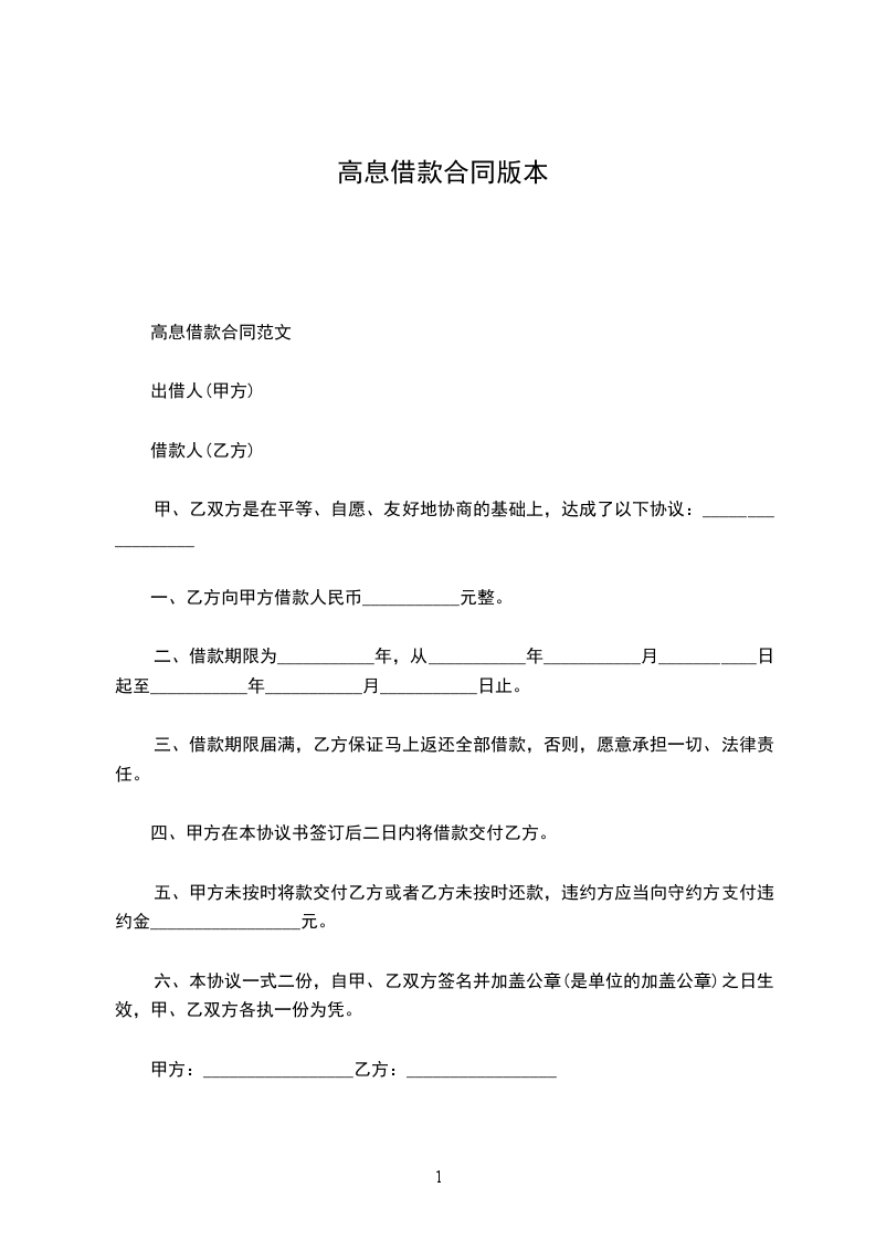 五、甲方未按时将款交付乙方或者乙方未按时还款,违约方应当向守约方支付违约金_________________元。