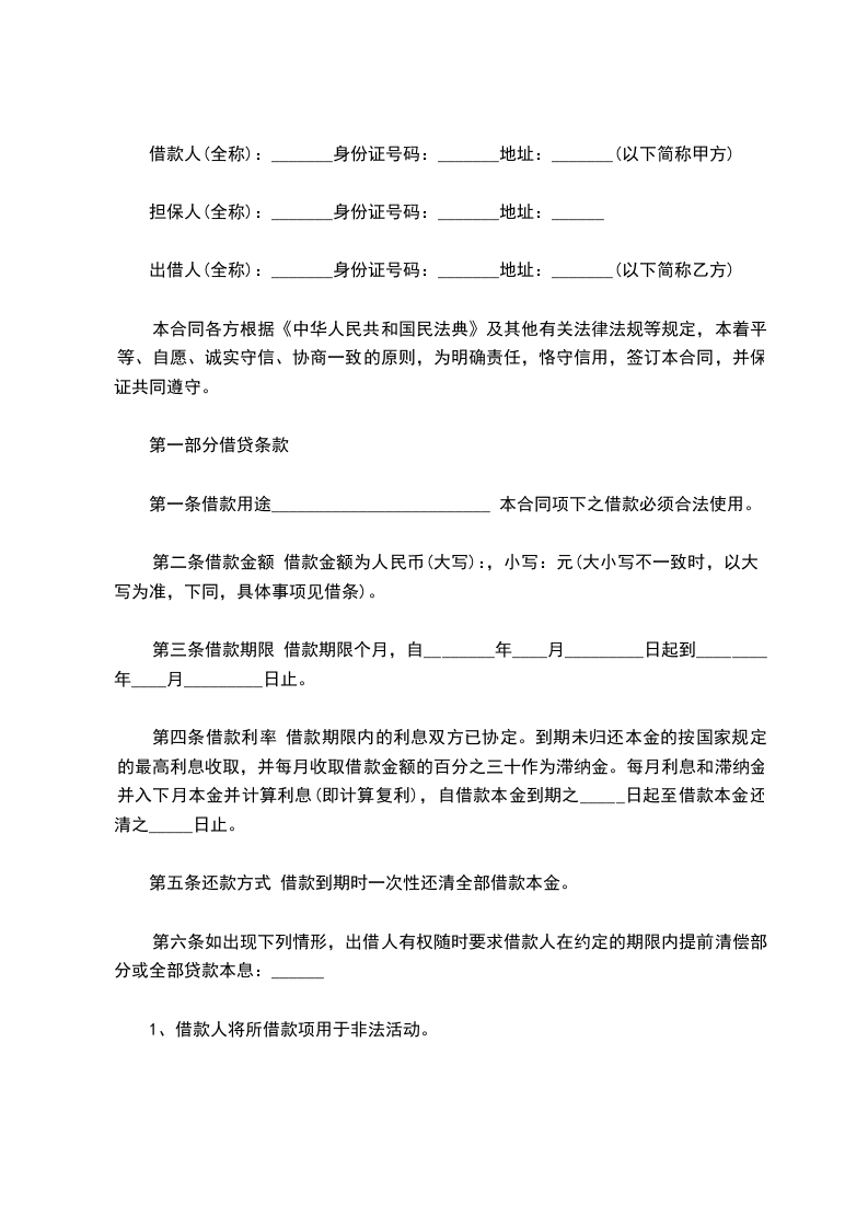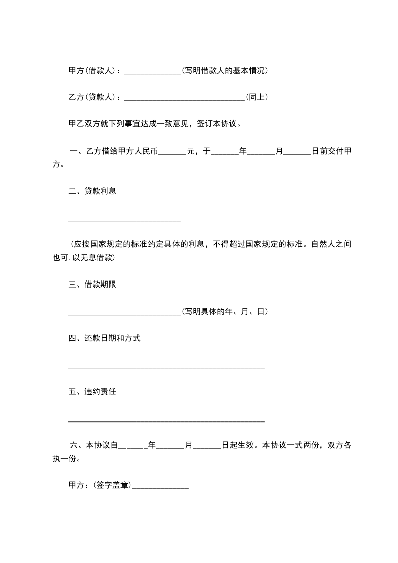 二、借款期限为___________年,从___________年___________月___________日起至___________年___________月___________日止。