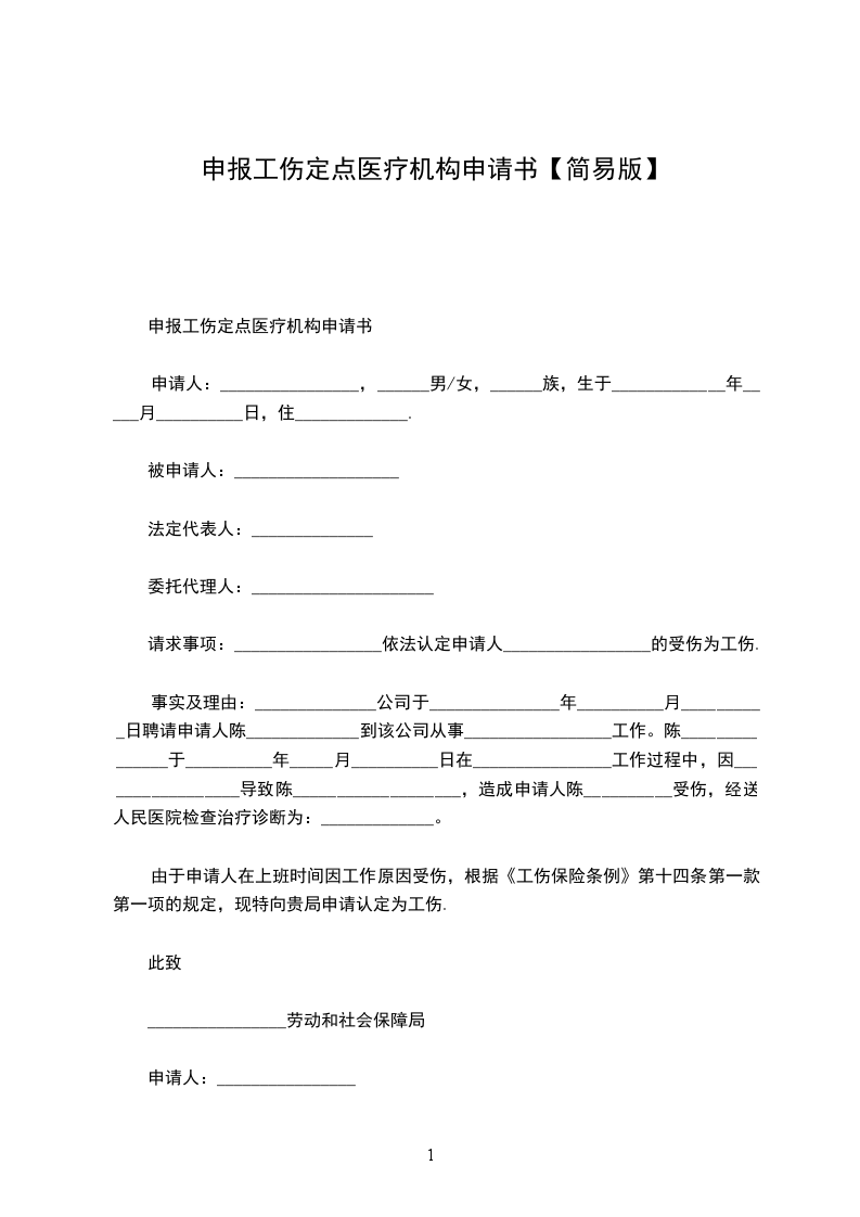 请求事项:_________________依法认定申请人_________________的受伤为工伤。