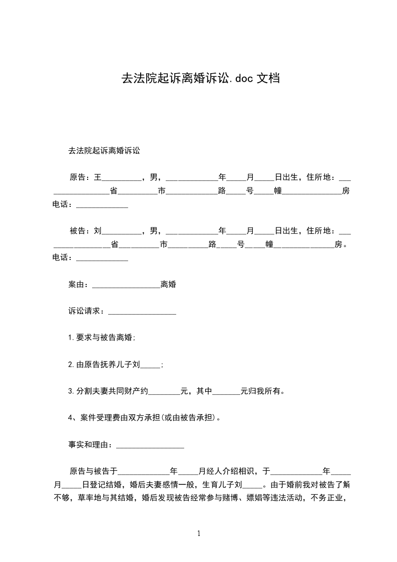 原告与被告于_____________年_____月经人介绍相识,于_____________年_____月_____日登记结婚,婚后夫妻感情一般,生育儿子刘_____。由于婚前我对被告了解不够,草率地与其结婚,婚后发现被告经常参与赌博、嫖娼等违法活动,不务正业,经我多次苦心规劝,仍劣性不改。被告婚后的所作所为,对家庭及亲人极端不负责任,已严重伤害了夫妻感情,加之双方性格不合,夫妻长期分居,现夫妻感情已完全、彻底破裂,夫妻关系名存实亡。另我们夫妻存续期间拥有夫妻共同财产约_______元。现我向法院提起诉讼,要求与被告离婚并由我抚养儿子刘_____,另分割夫妻共同财产_______元中的_______元归我所有。