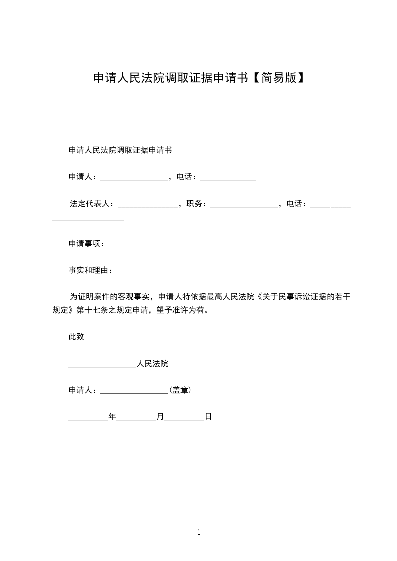 申请人民法院调取证据申请书