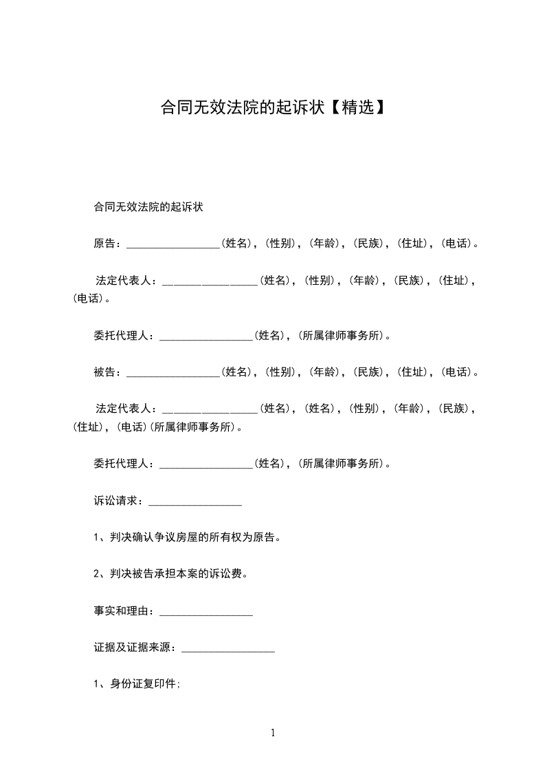 合同无效法院的起诉状