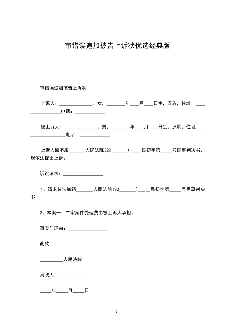 审错误追加被告上诉状