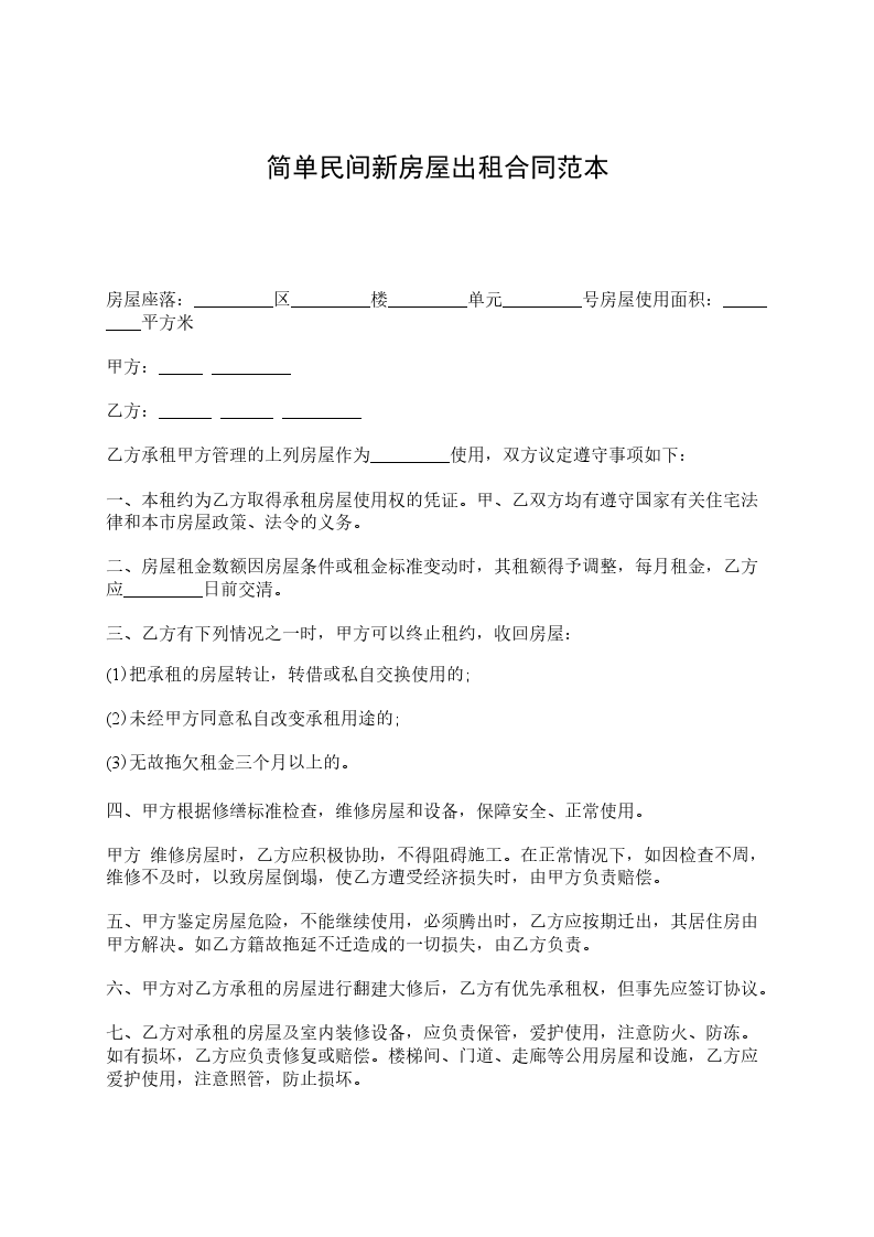 甲方:(出租方)___________乙方:(承租方)___________甲乙双方按照互利、互惠、平等、自愿、协商一致的原则,根据《民法典》的有关规定,签订以下店面出租协议书样本:一、被租房屋为_____________________________门面房_____间。二、租赁期限。租赁期为______年,从______年_____月_____日至______年_____月_____日。合同期满后,甲方如果继续对外租赁本房屋,乙方享有优先承租权,乙方必须在合同到期前10日内,与甲方商议签订新租赁合同,否则按自动弃权处理,甲方有权另行发包。三、租金每年为________元(大写____________________________),乙方必须于每年的十月一日前一次性将租金交齐,交不齐则视为违约,每超过一天,乙方应按每年房租的10%的罚款赔偿给甲方。四、租赁期房屋的修缮。房屋属人为的损坏由乙方及时修缮,由于不可抗拒的损坏,由甲方及时修缮。五、乙方在经营过程中的一切经济纠纷及其它任何责任与甲方无关。六、店面出租协议书样本的出租方与承租方的变更1、在合同履行期内,乙方不征得甲方同意,无权将房屋转租给第三者或相互对换房屋,否则甲方有权收回房屋。2、在合同期内,如果甲方同意乙方将房屋使用权交付给第三者,本合同对原乙方与房屋使用权者继续有效。七、在合同履行期间,乙方与第三者发生的一切经济、民事等纠纷,甲方概不负责。八、在合同履行期间,乙方应保持所租房内外所有设施完好无损,如果确需改造或增设其他固定设施,应征得甲方同意后再进行,所需经费由双方协商,合同期满时,乙方如需拆除,需将房屋恢复原样,不愿拆除或不得拆除的甲方不予补偿。九、在合同履行期间,如有政策变化,市里统一规划等其它原因需要拆除房屋,其租赁费按实际使用时间计算,本合同即终止。乙方要积极配合不得向甲方提出任何要求。十、在合同履行期间,要遵纪守法,讲文明道德,自觉维护好室内外卫生。水、电费及社会公共收费(治安、卫生、工商、税务等)由乙方自行缴纳。十一、甲方责任1、按合同规定的时间将房屋交给乙方使用,否则每超出一天应赔偿乙方年租金的10%的经济损失。2、不按合同内的条款规定修缮房屋的应赔偿乙方由此而造成的经济损失。3、不得无故终止合同(第九条除外),否则应赔偿乙方年租金的10%的经济损失。十二、乙方责任1、不得利用租赁的房屋进行非法活动,损害公共利益。2、不得干扰和影响周围居民的正常生活。3、不按合同内的条款规定修缮房屋的其它设施,根据造成的后果,赔偿其经济损失。4、合同终止后要及时搬出,否则按租赁房屋缴纳租金,并处以租金的10%罚款。十三、免责条件如因不可抵抗的自然灾害,使双方或任何一方造成经济损失的,任何一方均不得向对方提出索赔要求。十四、本合同未尽事宜,依据《中华人民共和国民法典》的有关条款,经双方共同协商,作出补充规定,补充规定与本合同具有同等效力。十五、本合同自签字之日起生效。十六、本店面出租协议书样本一式两份,甲乙双方各执一份。(备注:租金由甲方签约人按年收租,并开具收据,如乙方违背,处以租金的50%罚款,甲方有权立即收回出租门面。)甲方(出租方):___________乙方(承租方):___________手印:___________手印:_______________年____月____日