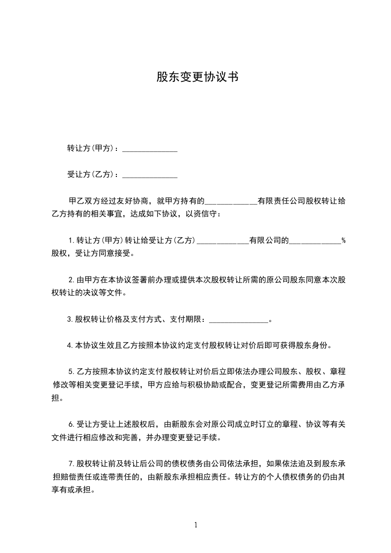 1.转让方(甲方)转让给受让方(乙方)_____________有限公司的_____________%股权,受让方同意接受。