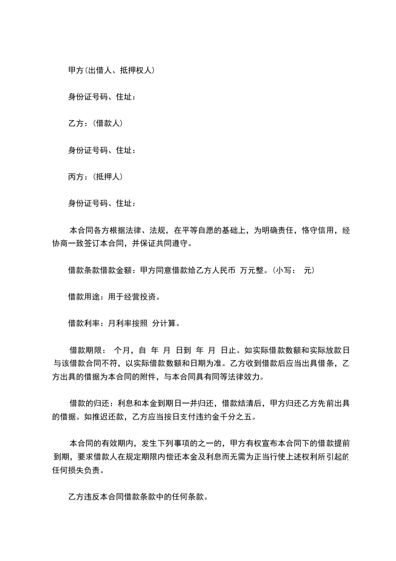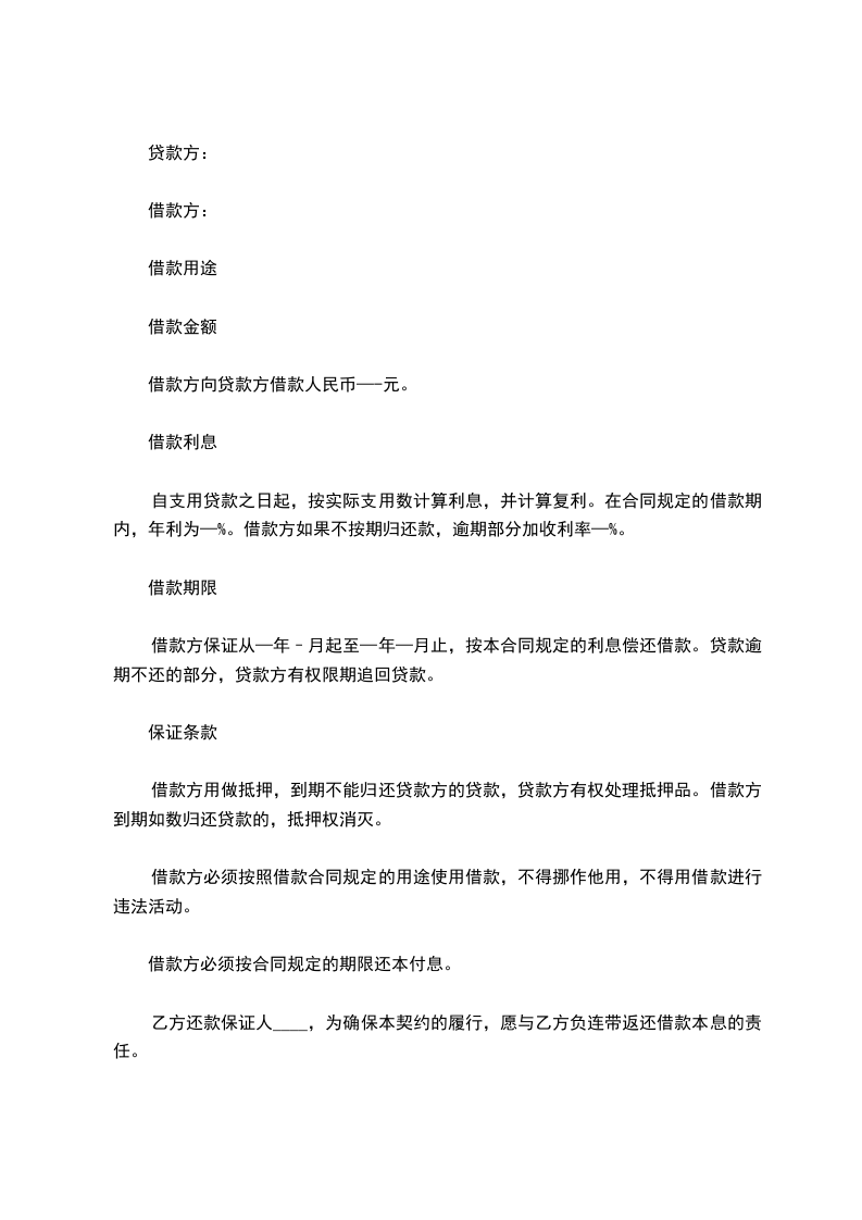 第一条、借款金额和用途借款方向贷款方申请借款人民币(大写)__________万元。