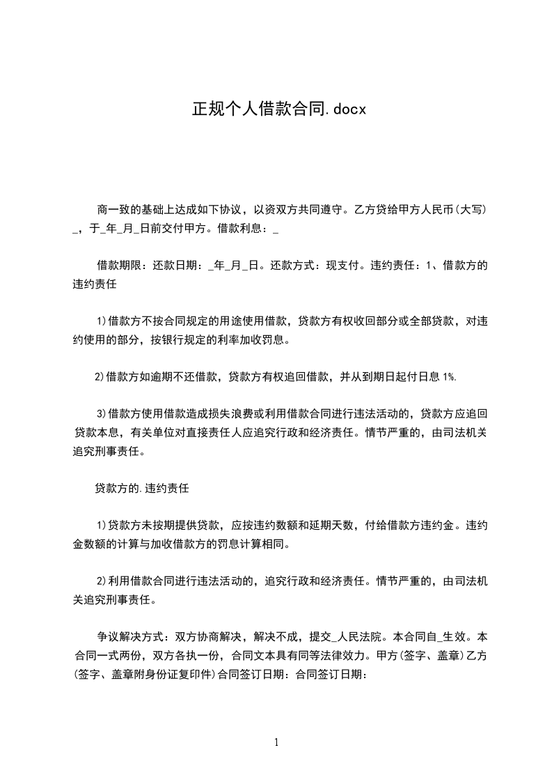 个人正规借款合同书