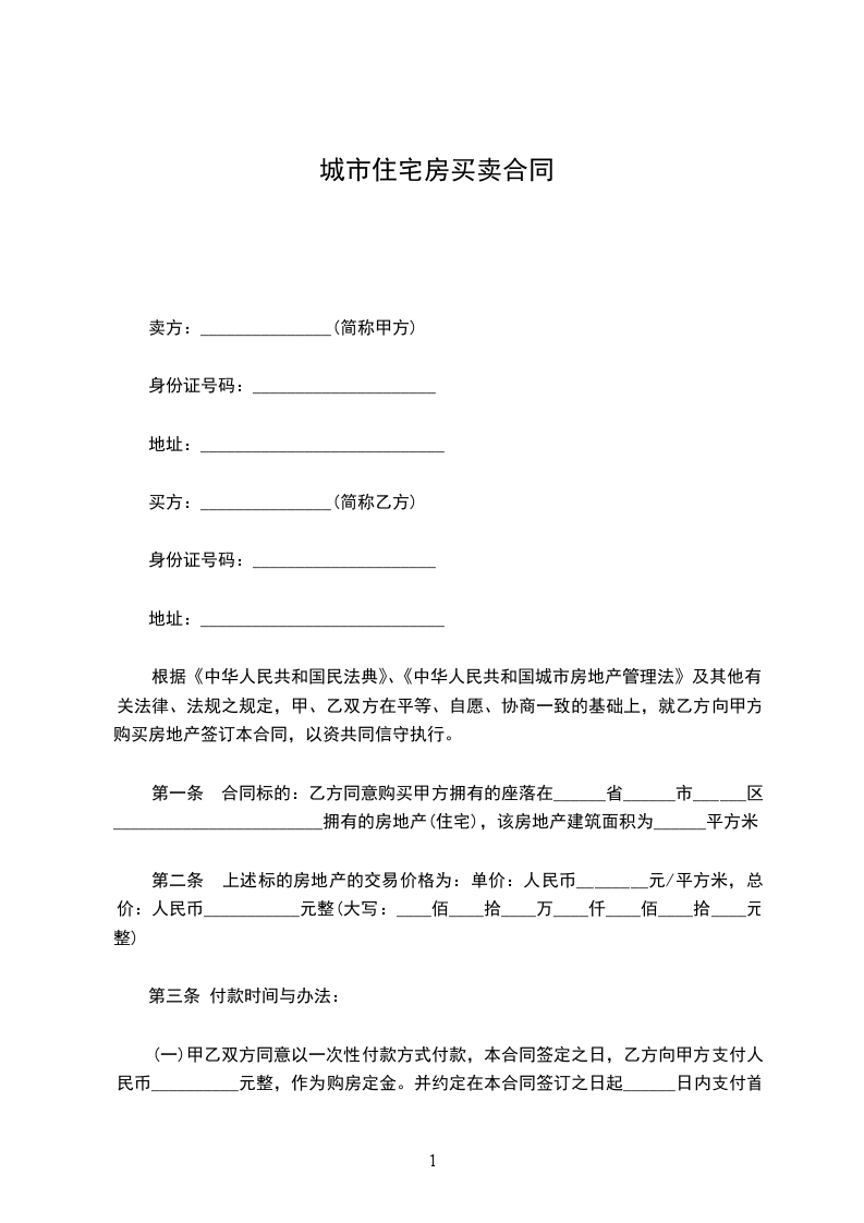 甲、乙双方于________年________月________日签订了《房屋买卖合同》。甲、乙双方在平等、自愿、协商一致的基础上达成如下协议,共同遵守: