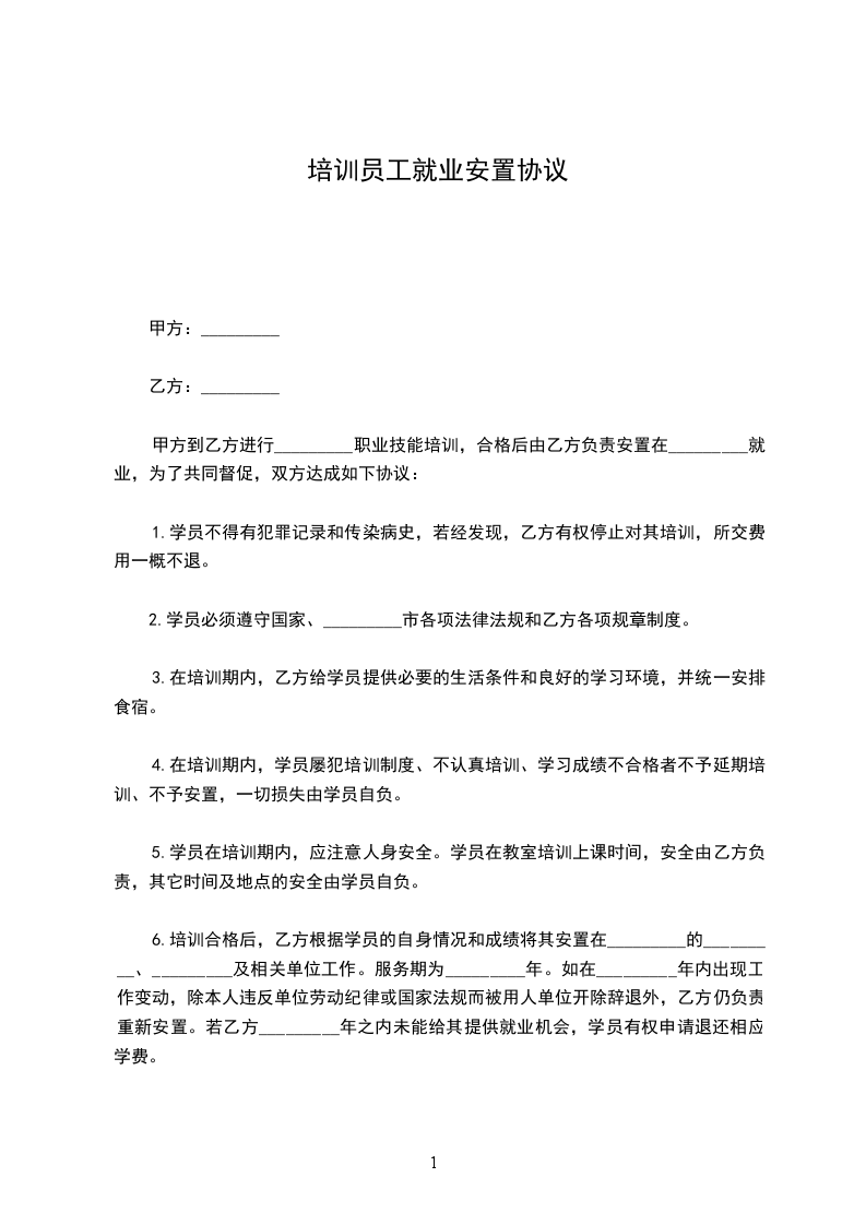为了保障全部学员的就业安置,更好地组织和实施教学,履行各自的职责,保障双方权益,依据平等自愿的原则,双方签订如下协议: