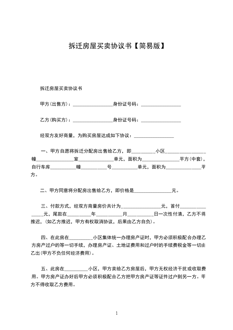 建设单位(甲方)(公章):_________________拆迁户(乙方)(签章):_________________