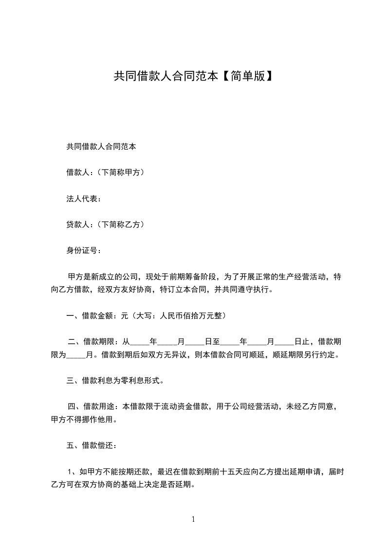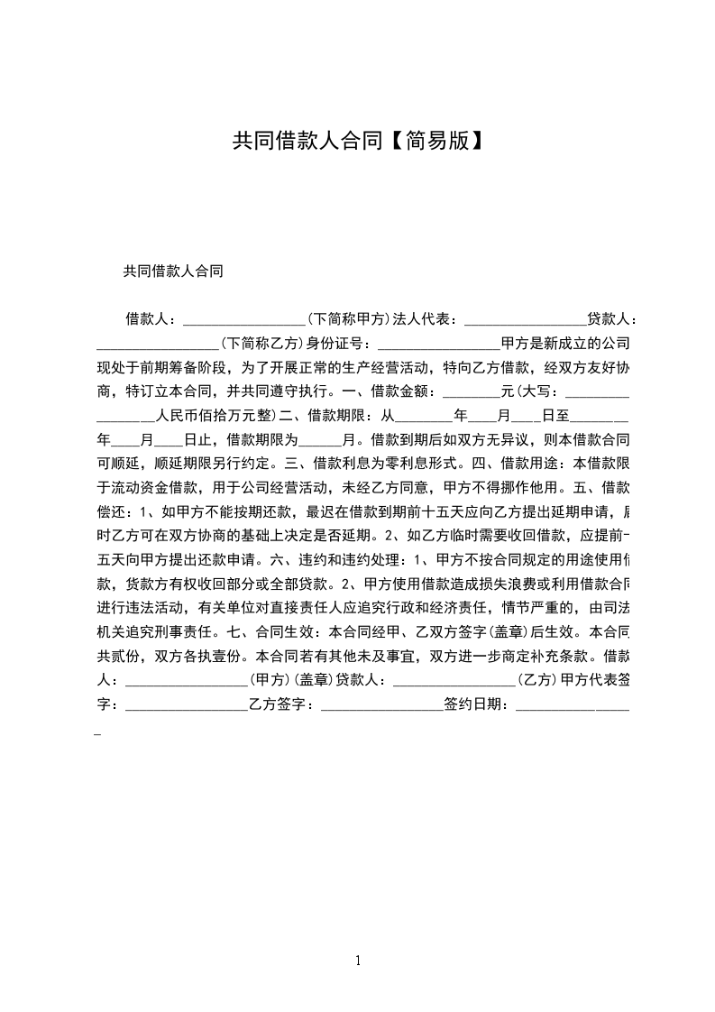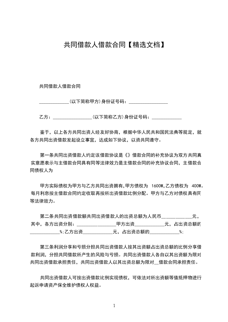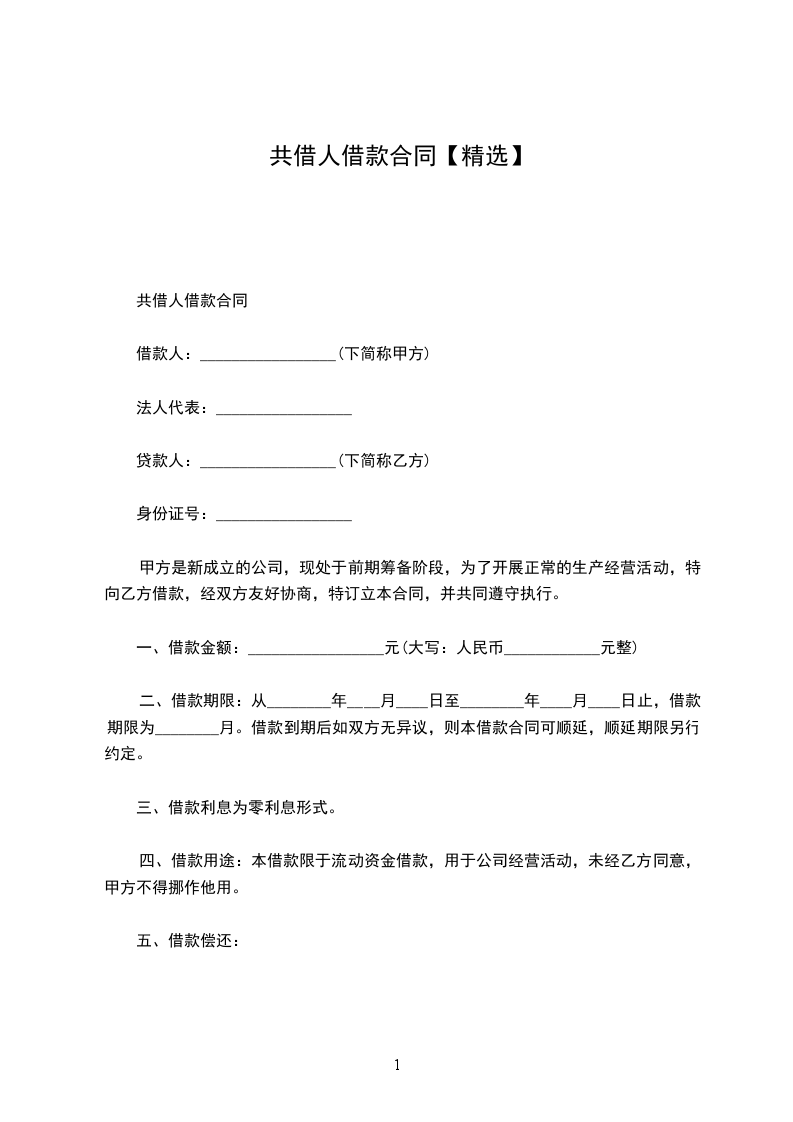 共借人借款合同