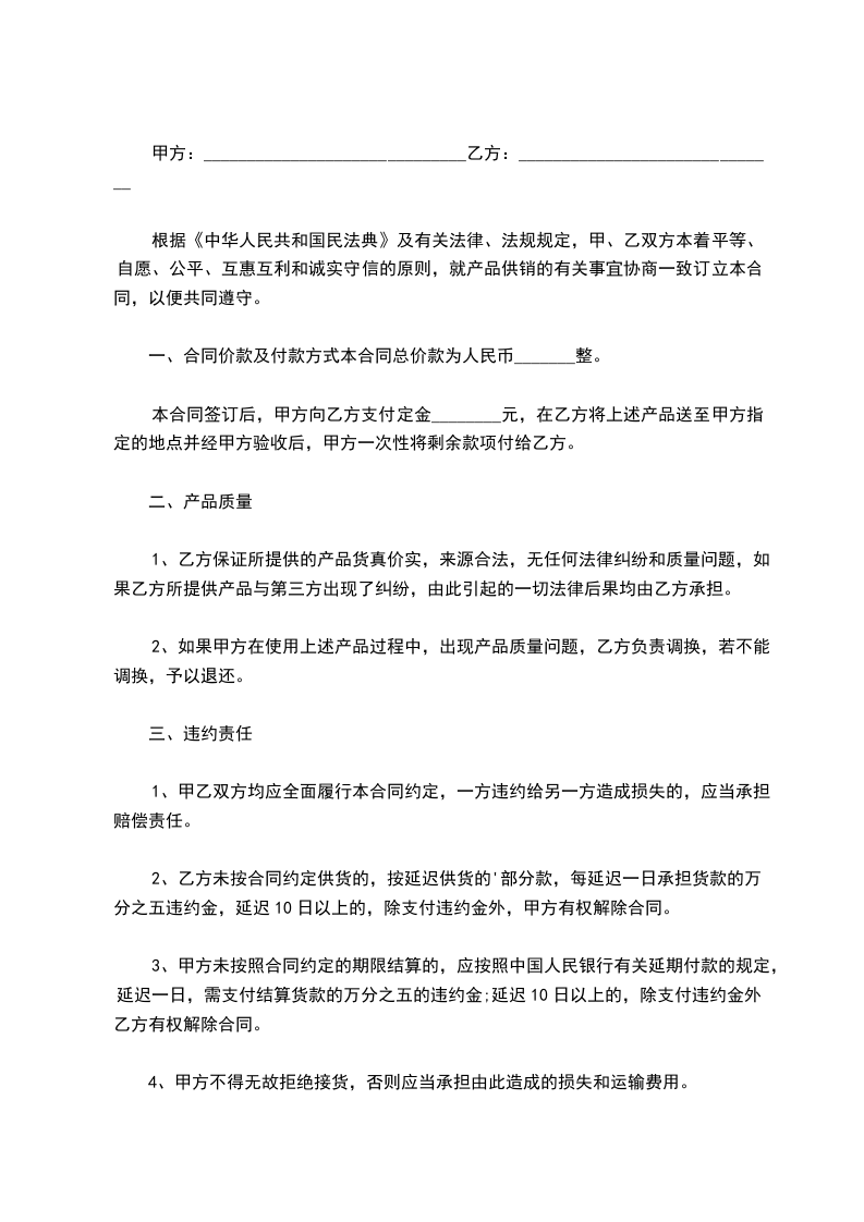 根据《中华人民共和国民法典》及其他有关法律、行政法规的规定,甲、乙双方遵循平等、自愿、公平和诚实信用的原则,就商品进货购销事宜协商订立本合同。