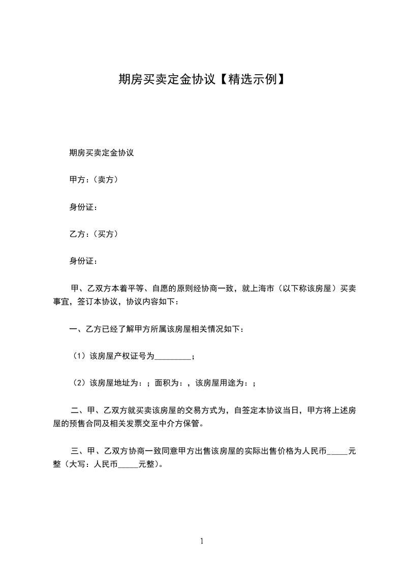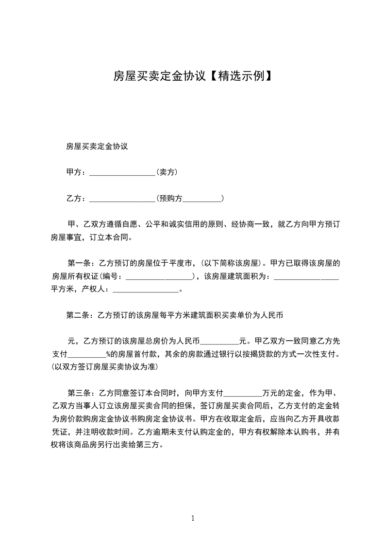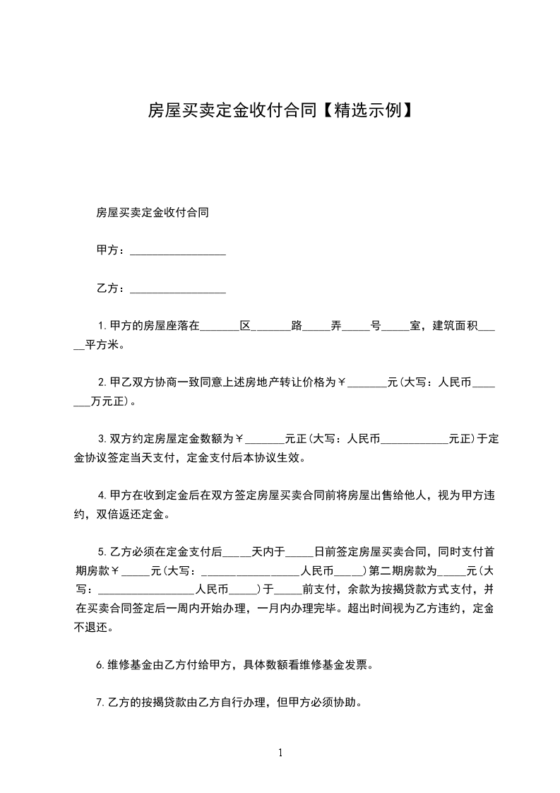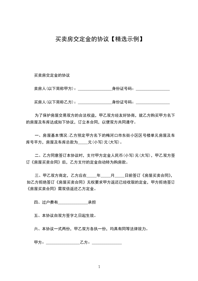 1、乙方于签约后次日,直接支付甲方定金人民币_____元整。