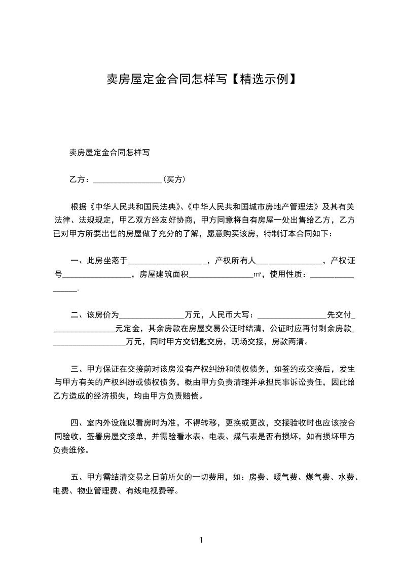 四、乙方于签约后次日,于中介方查询该房屋除银行抵押外无其他权利限制及查封状况,且甲方将相关交易资料交至中介方后,直接支付甲方定金人民币_____元整,该笔定金自甲、乙双方所签定的《上海市房地产买卖合同》生效后自动转为购房款。