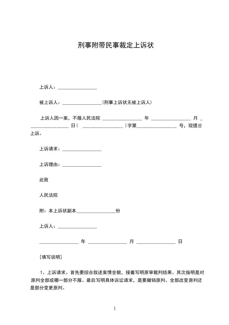 请求事项:_________________(写明提出上诉所要达到的目的)