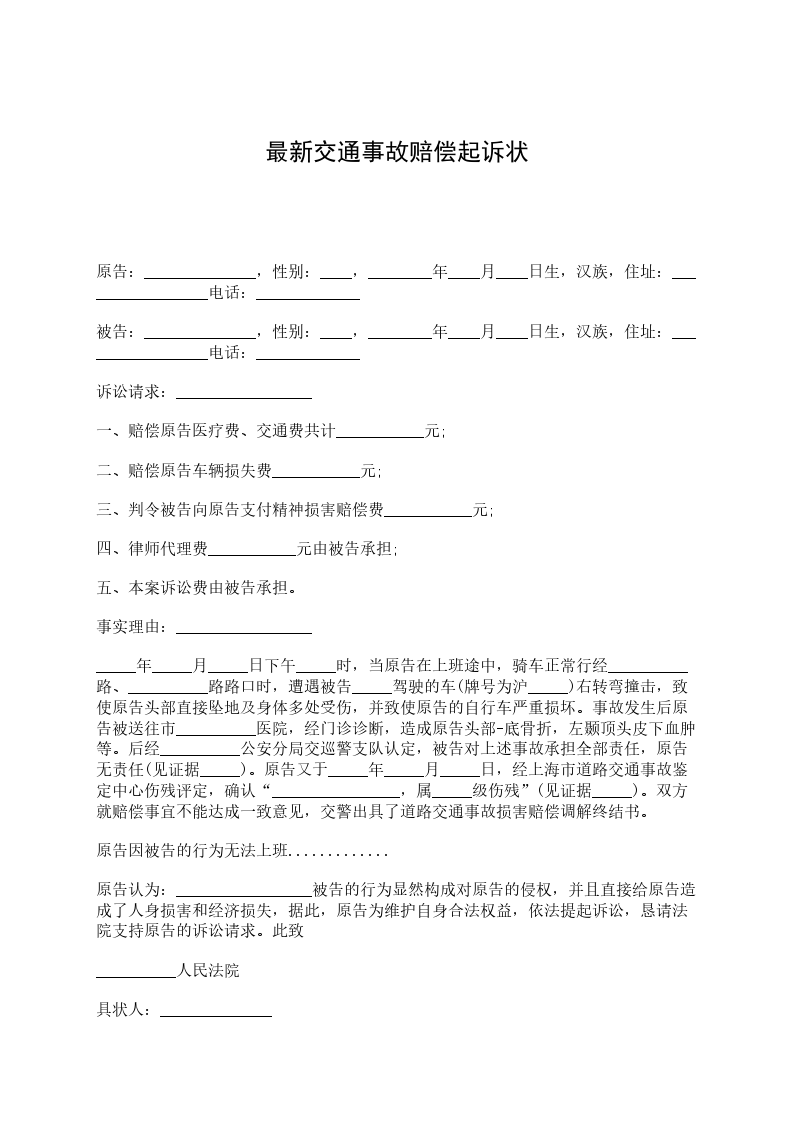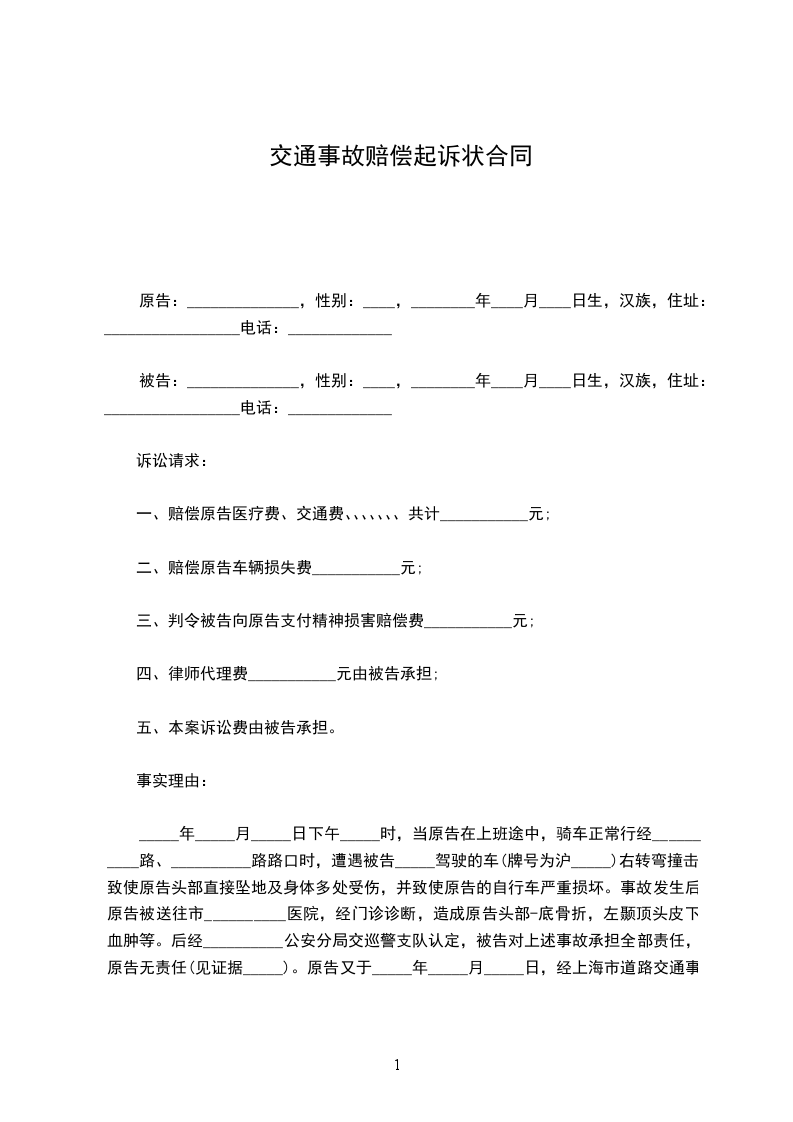 一、赔偿原告医疗费、交通费、、、、、、、共计元;