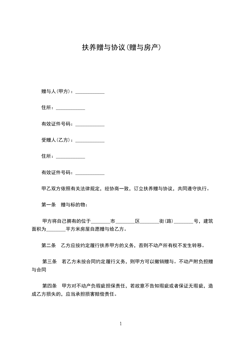 赠与人:,身份证号: