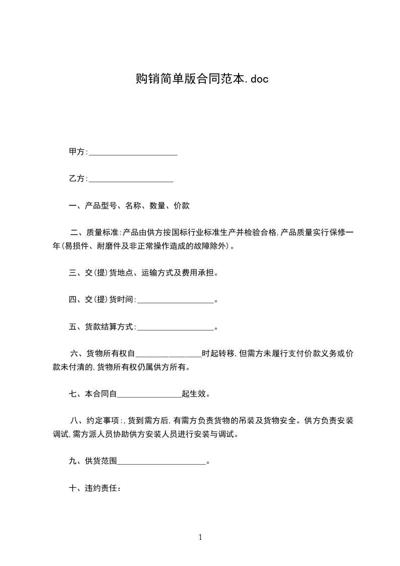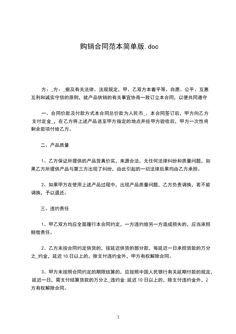 简单购销合同范本一