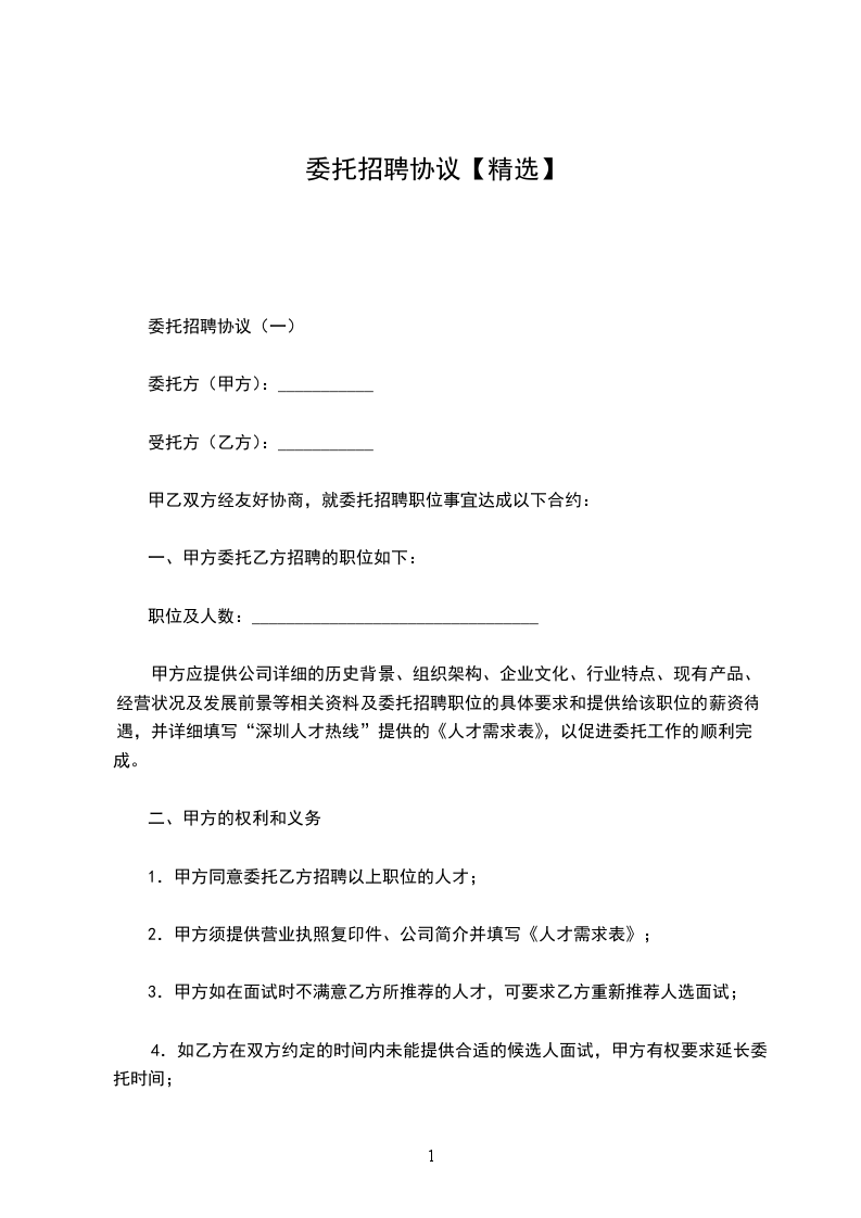 委托招聘协议(一)