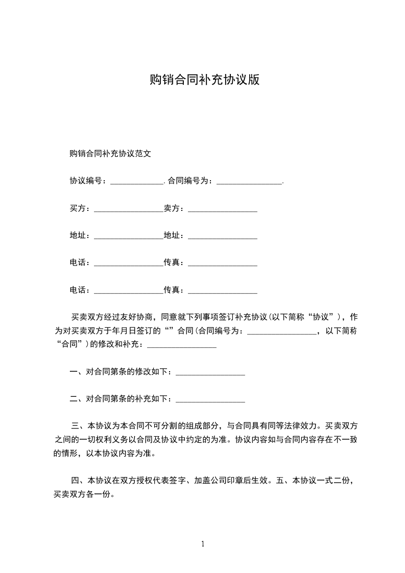 购销合同补充协议范本