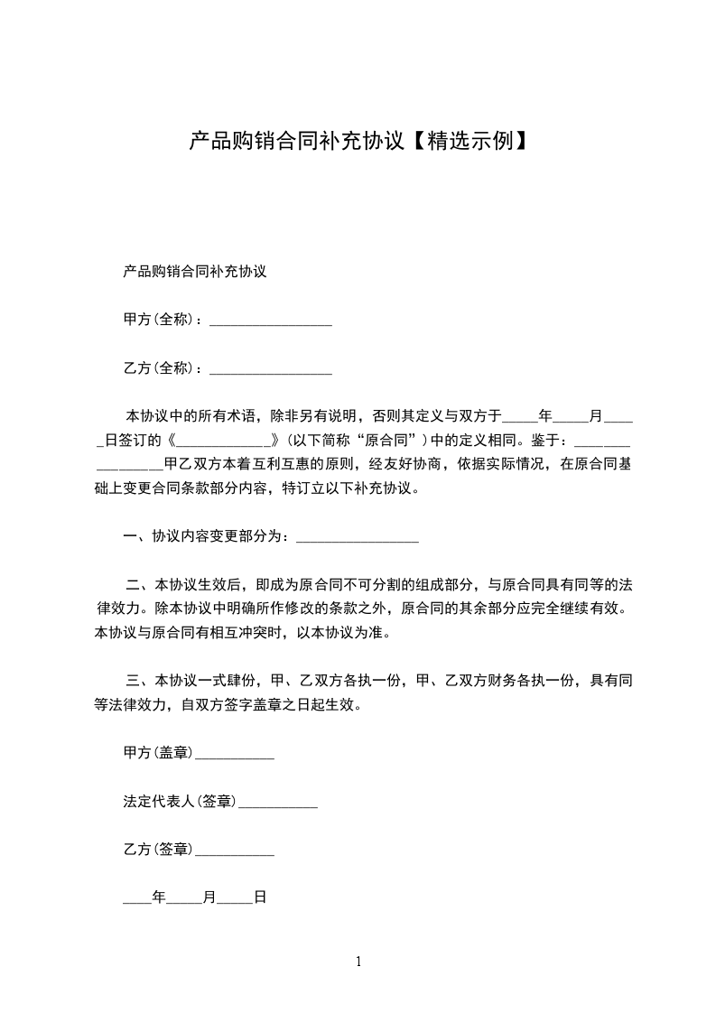 六、本补充协议与购销合同一样具有法律效力。