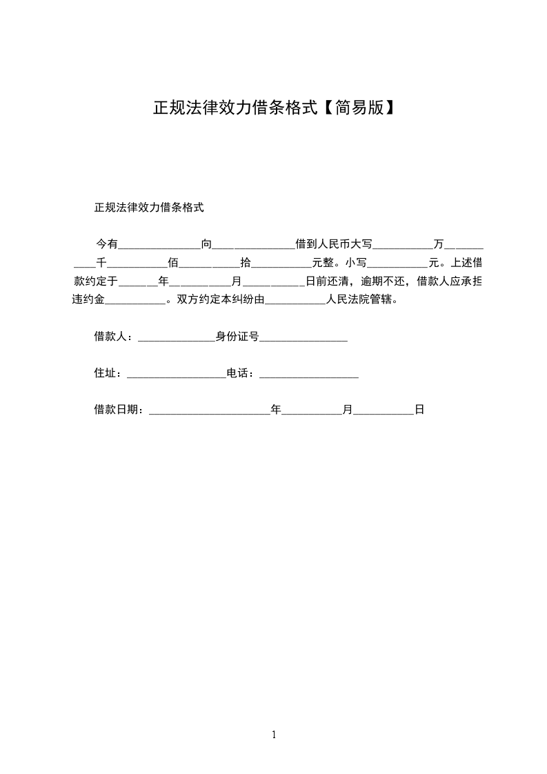 正规法律效力借条格式