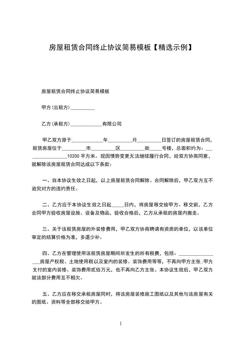 1、该房屋租赁期共一年。自________年____月____日起至________年____月____日止。