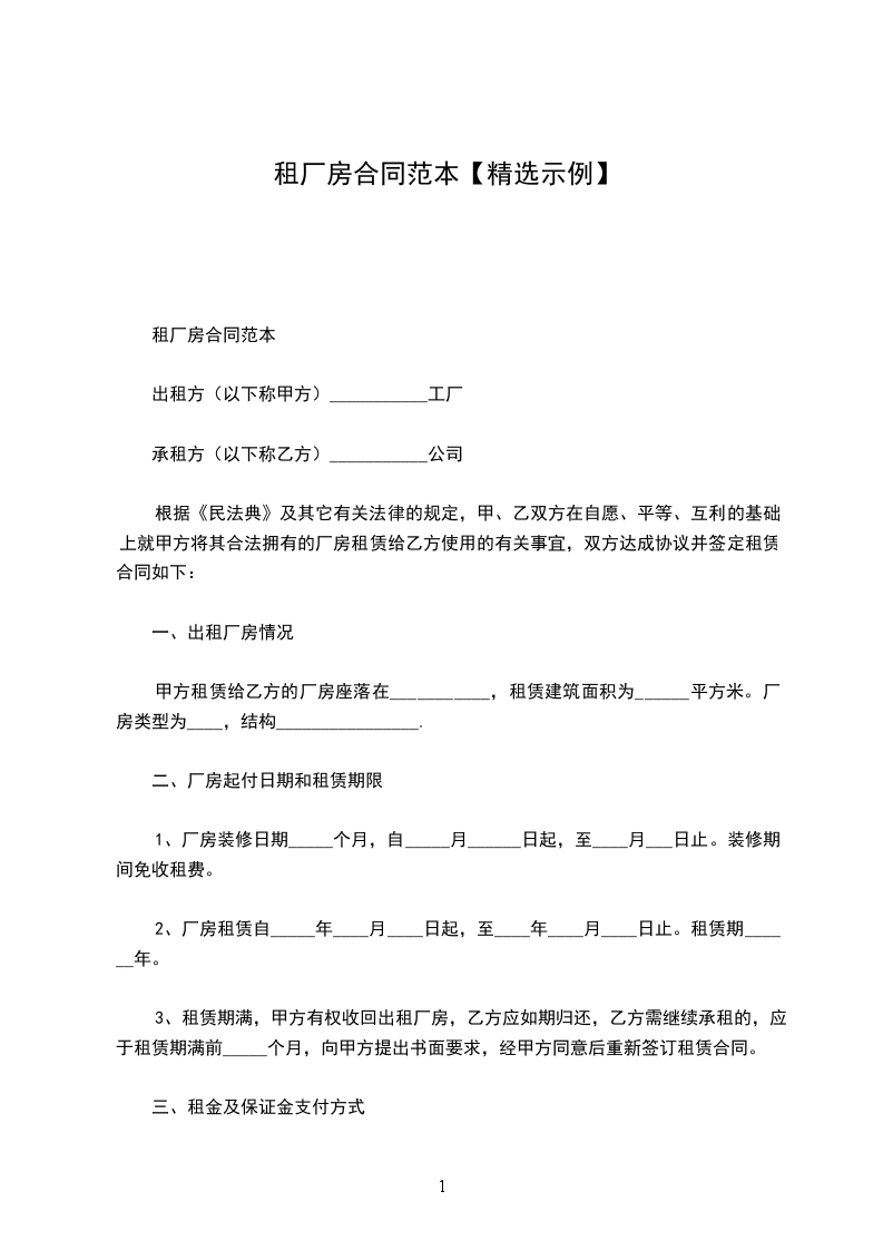 租厂房合同范本