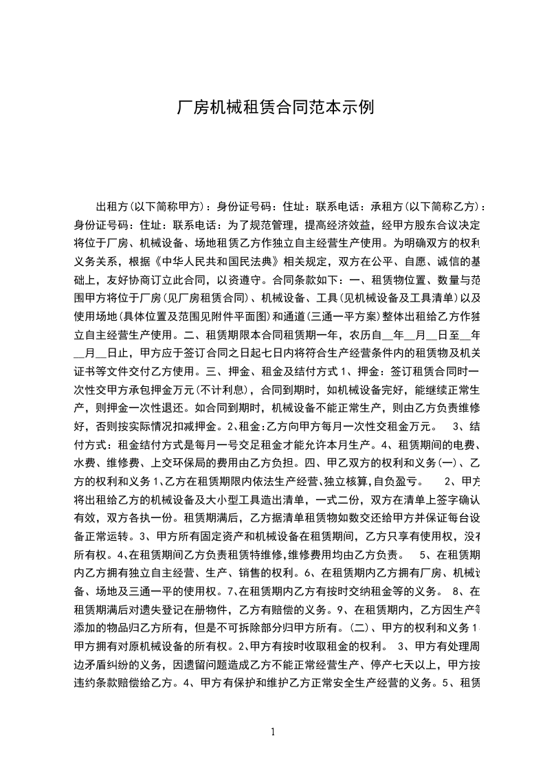 出租方(以下称甲方)___________工厂