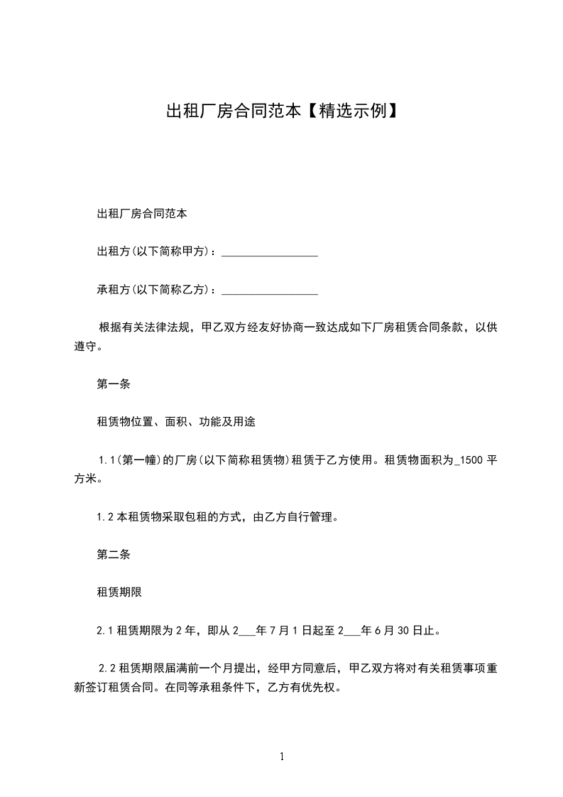 2、厂房租赁自_____年____月____日起,至____年____月____日止。租赁期______年。
