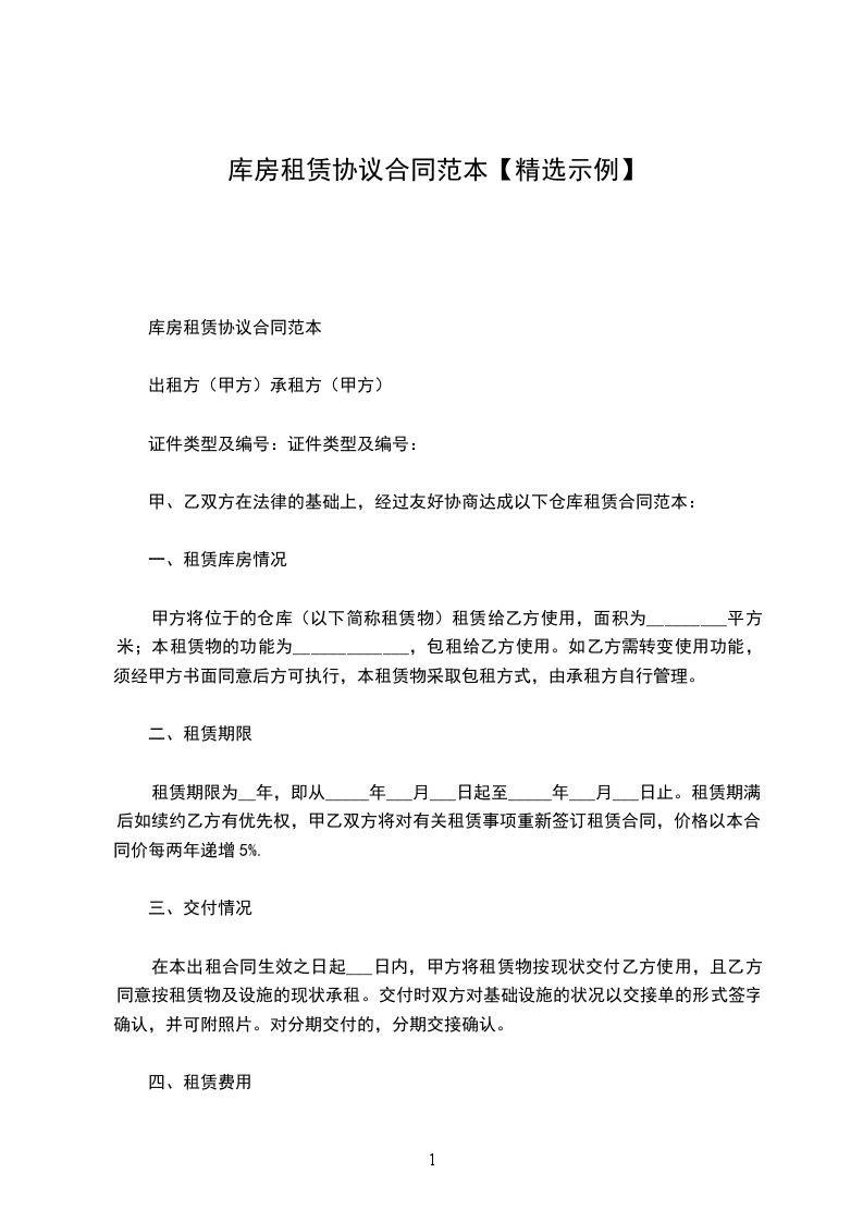 库房租赁协议书