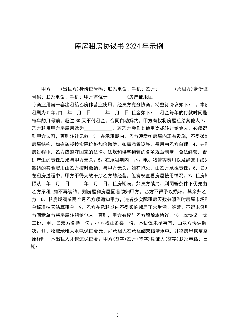 1.租赁库房用途为__________________,乙方应按该用途使用库房。