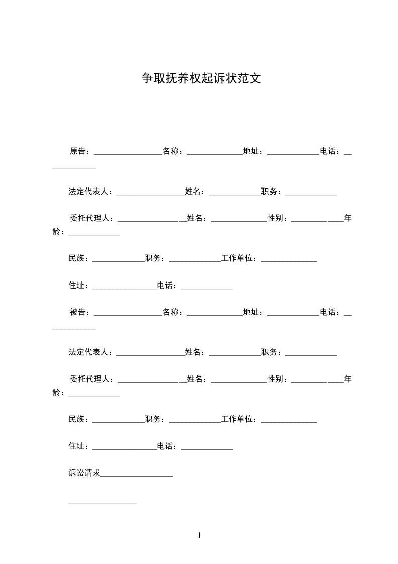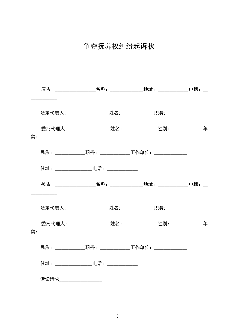 争抚养权起诉书