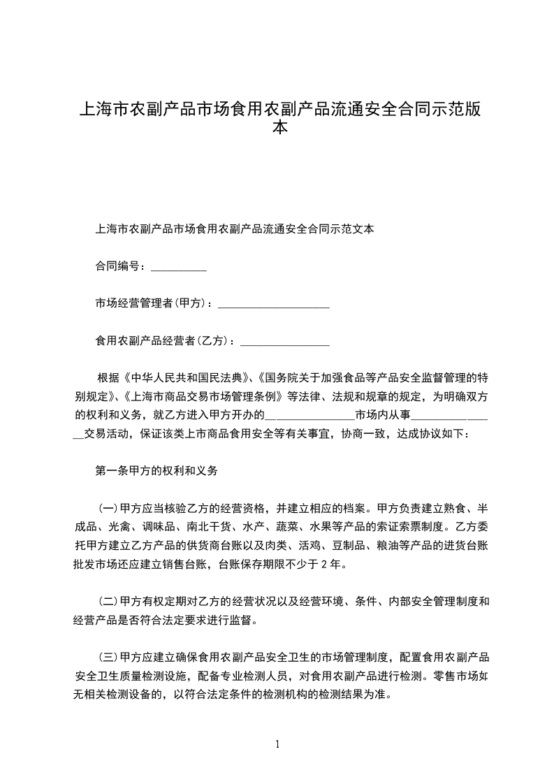 上海市农副产品市场食用农副产品流通安全合同示范文本