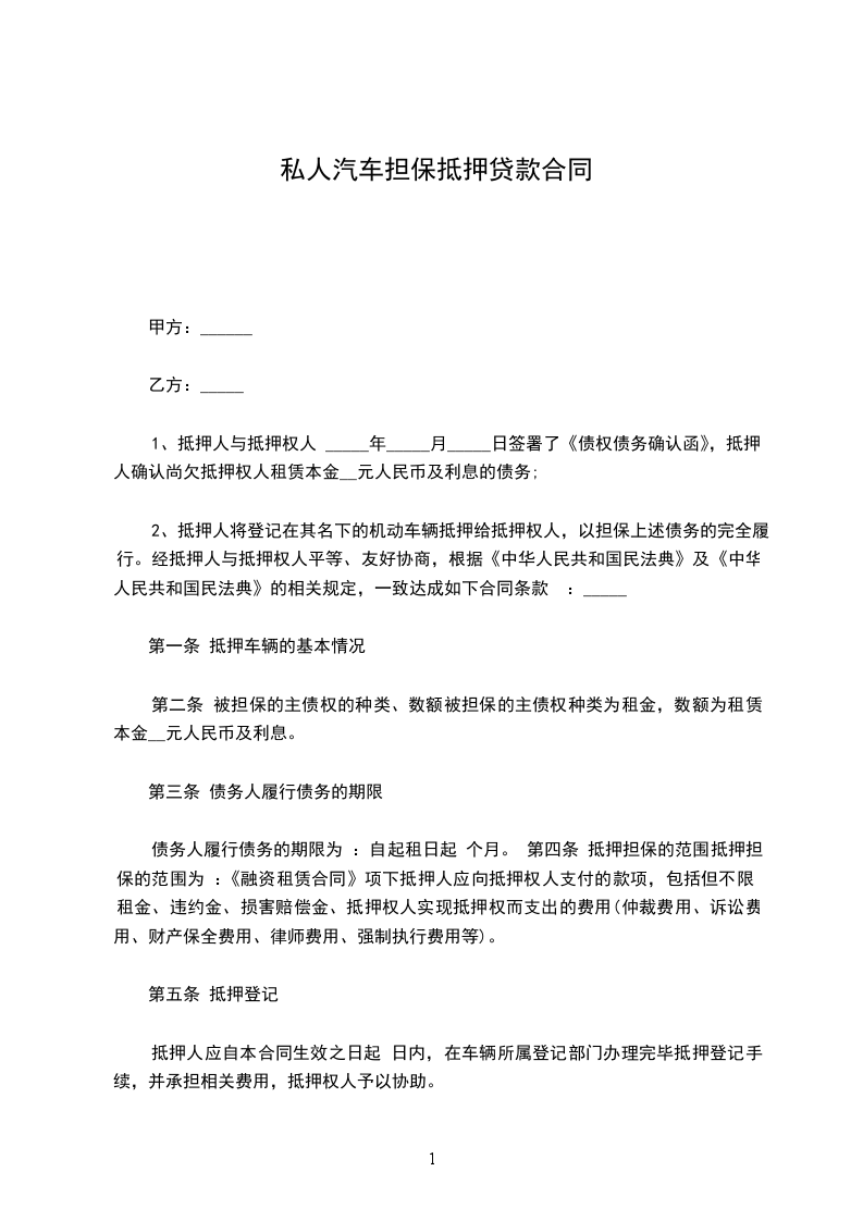 10、甲方应对其汽车贷款负有完全的偿还义务,此义务不因抵押物的灭失而消失;如抵押物灭失,甲方应以本人及其家庭共有财产全额偿还汽车贷款。