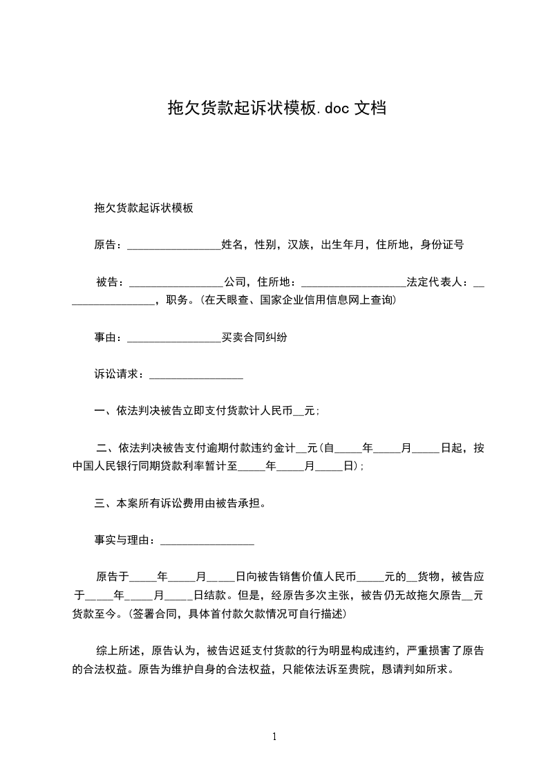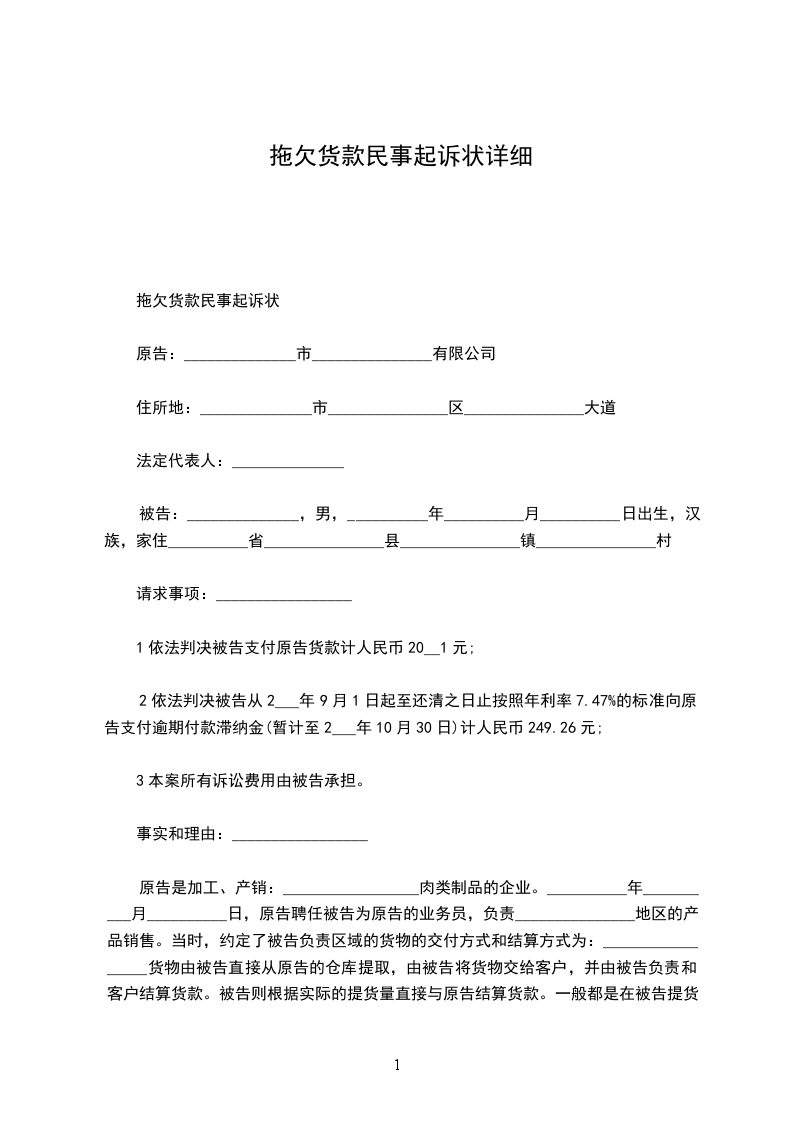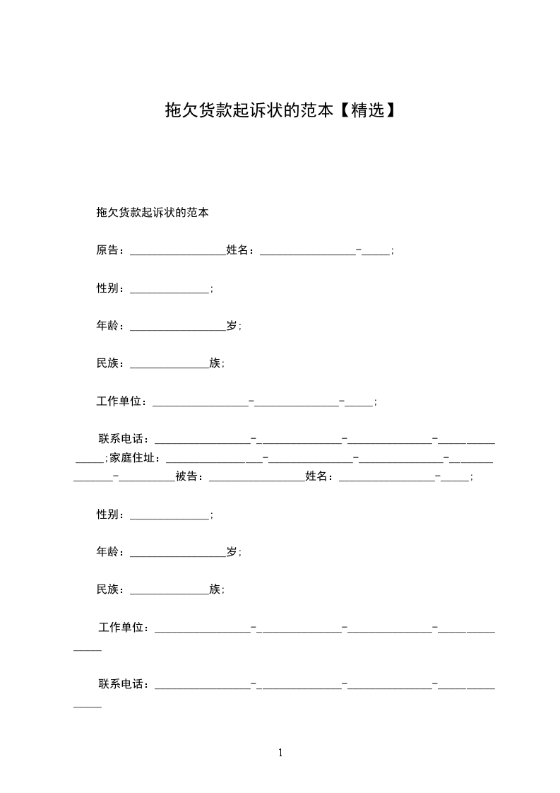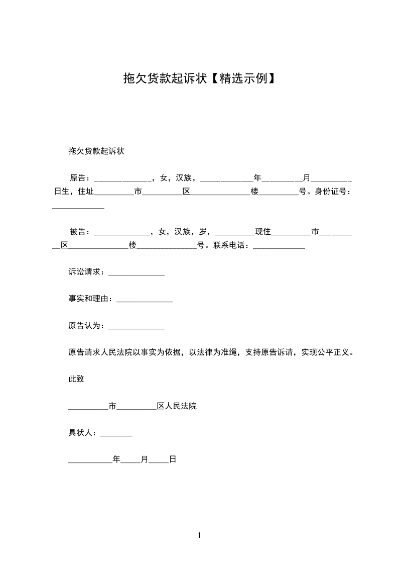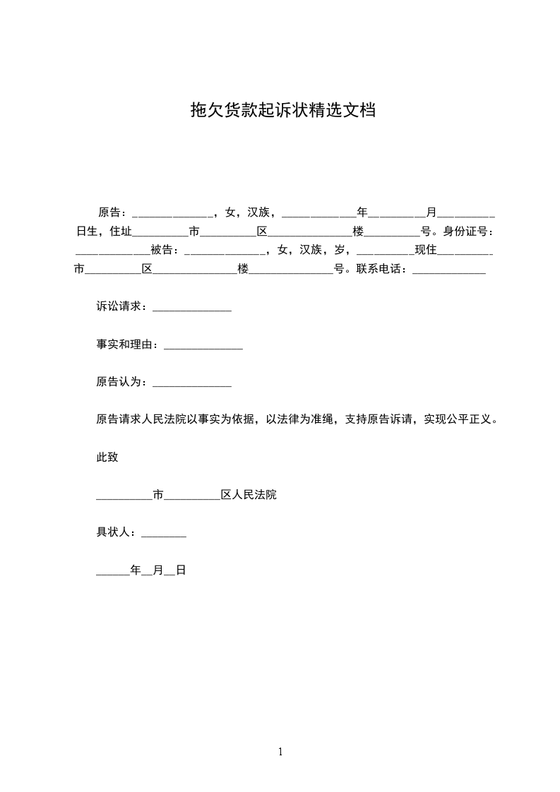 拖欠货款起诉状