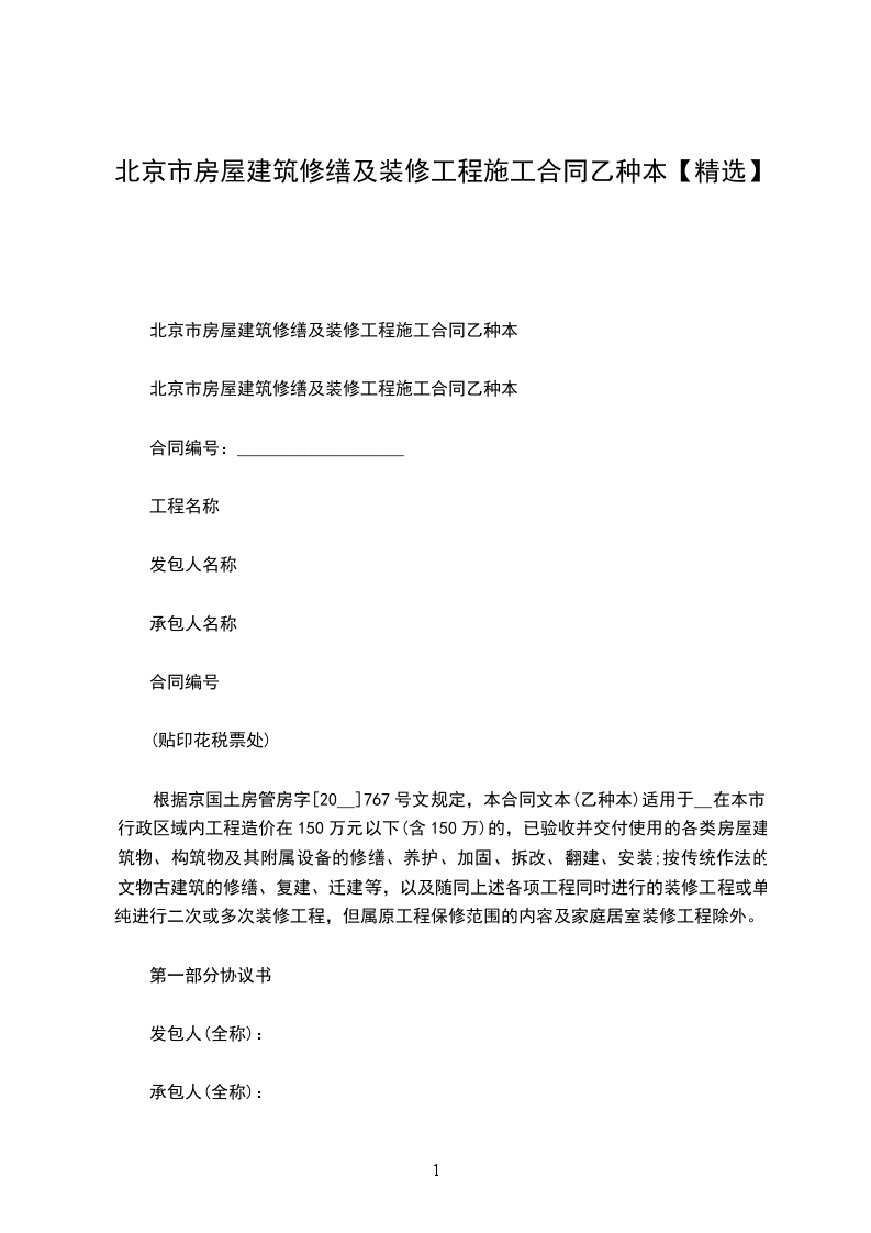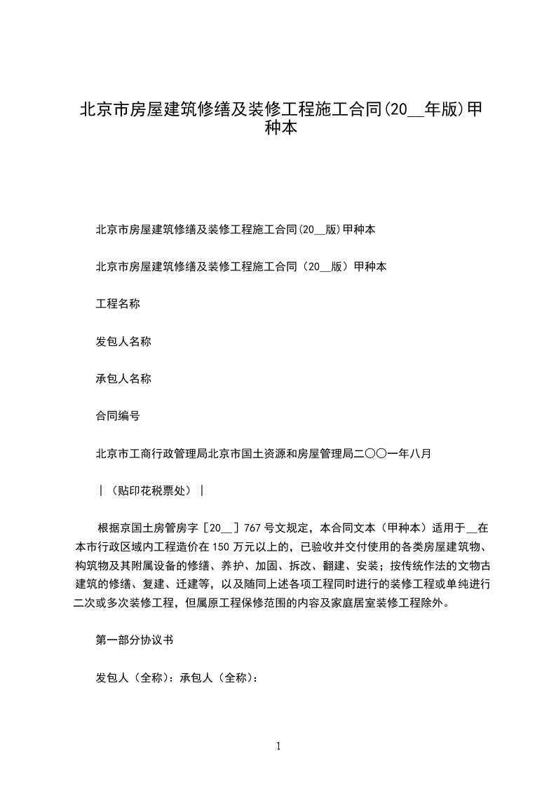 北京市房屋建筑修缮及装修工程施工合同(20__版)甲种本