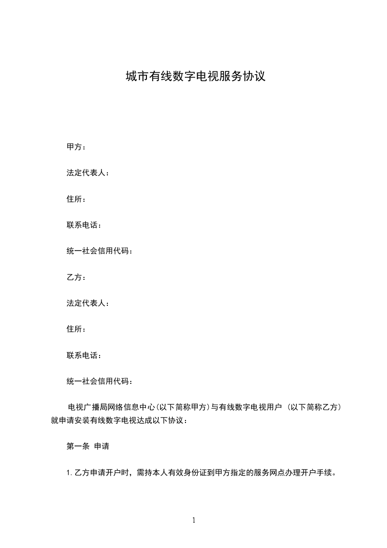 _________广播电视局网络信息中心(以下简称“甲方”)与有线数字电视用户(以下简称“乙方”)就申请安装有线数字电视达成以下协议: